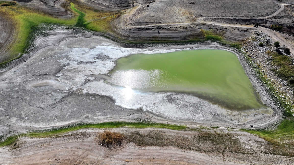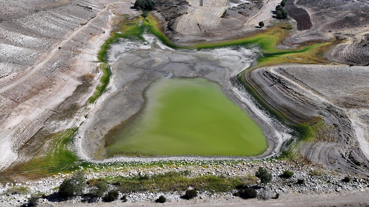 Kepiç Mahallesi Muhtarı Cemil Ertem, göletteki su seviyesinin ilk defa bu kadar çekildiğini söyledi.
