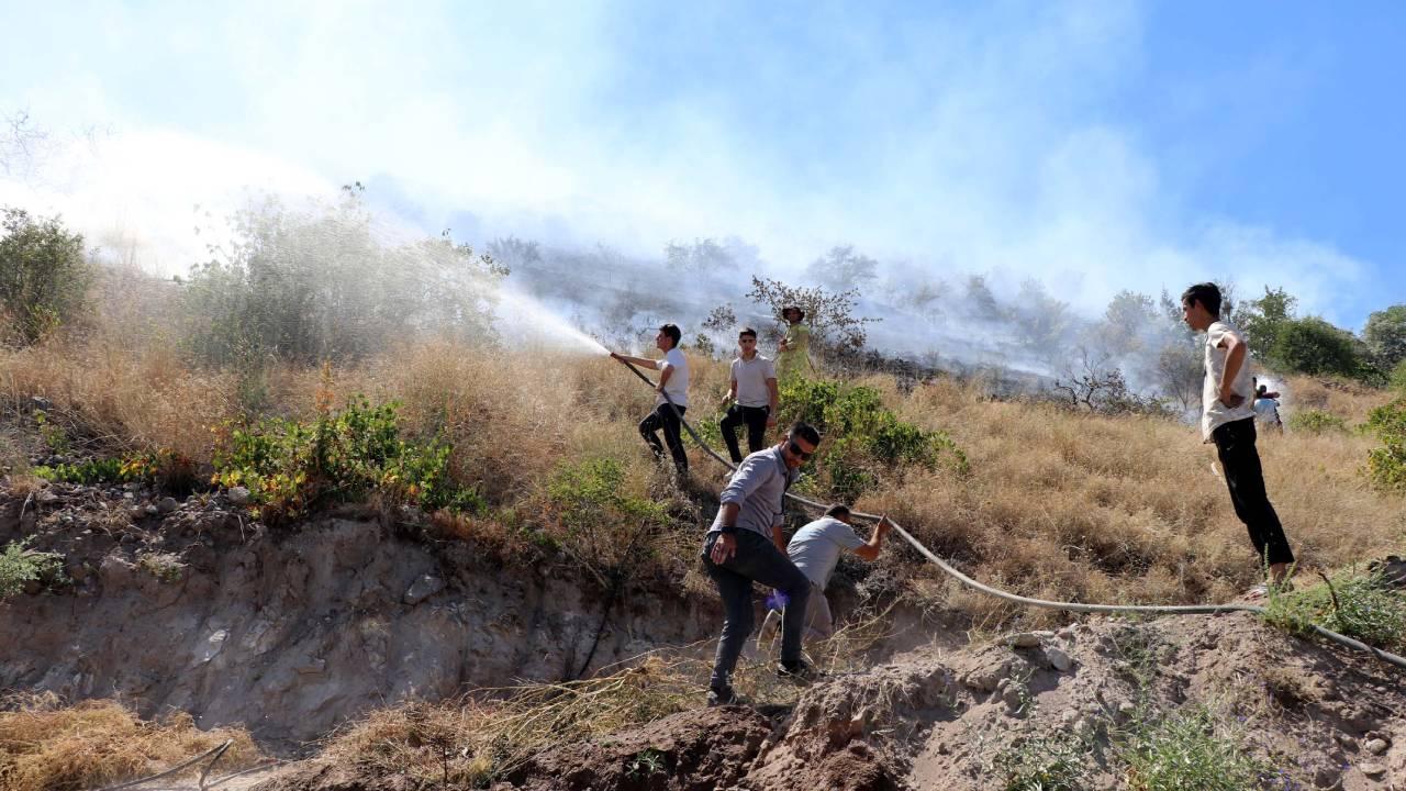 Yangın, saat 11.30 sıralarında Melikgazi ilçesi Sakarya Mahallesi’ndeki Yılan Dağı eteklerinde meydana geldi.