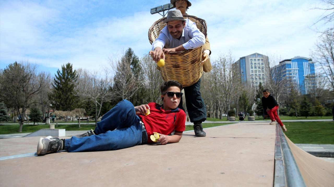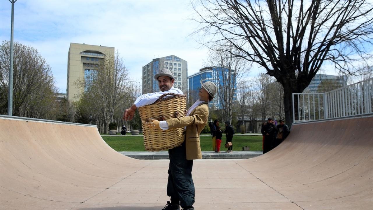 Sanatçı Adem Ocaktan, kendi sesiyle canlandırdığı farklı karakterlerdeki kuklalarla ve renkli kostümleriyle hem sokakta hem de sahnede gösteri düzenliyor.