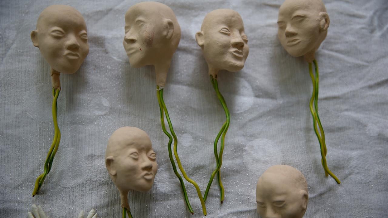 Çalışmalarına pamuk ve kitreyle şekil verdiklerini belirten Sümbül, "Yüzü, elleri, ayaklarını kitreden oluşturuyoruz. Beden, tel ve pamuktan oluşturuluyor. Daha sonra giydiriyoruz. İnsan ölçülerine uygun olacak şekilde boynu, yüzü, kolları, bacakları birleştiriyoruz. Daha sonra bunları modele göre giydiriyoruz, süslüyoruz." diye konuştu.