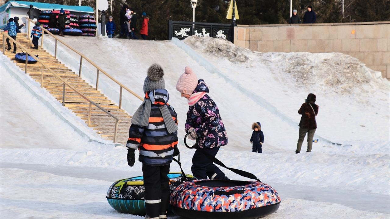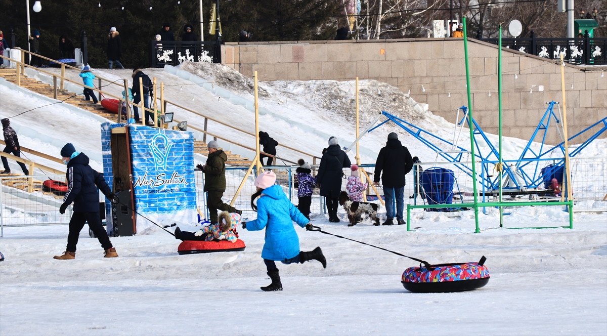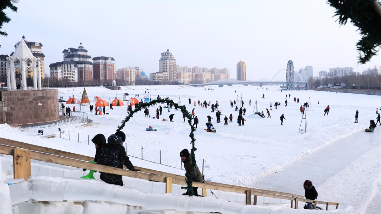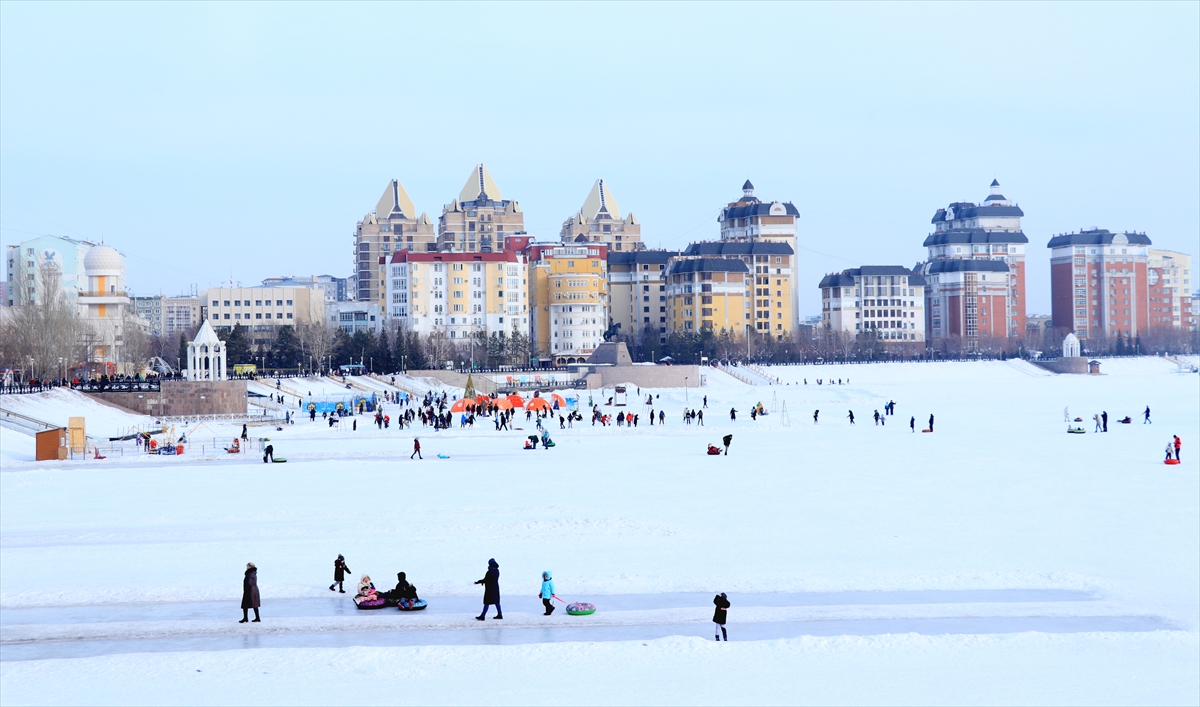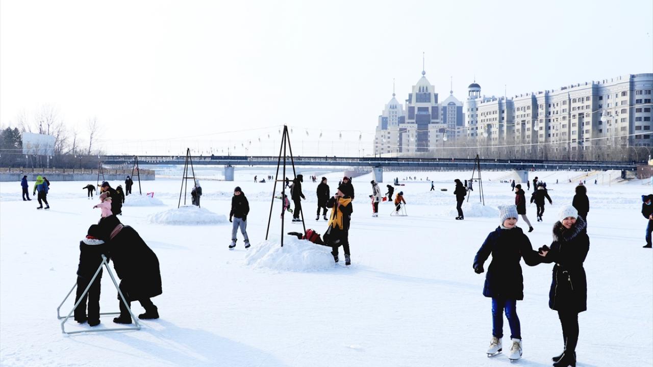 Kazakistan'da vatandaşlar, şehrin simgesi haline gelen ve kışın yüzeyi buz tutan Esil Nehri kenarına akın etti. Gün boyu güzel havanın tadını çıkaran vatandaşlar yürüyüş yaptı. Çocuklar da kızak ve paten kayarak eğlendi.