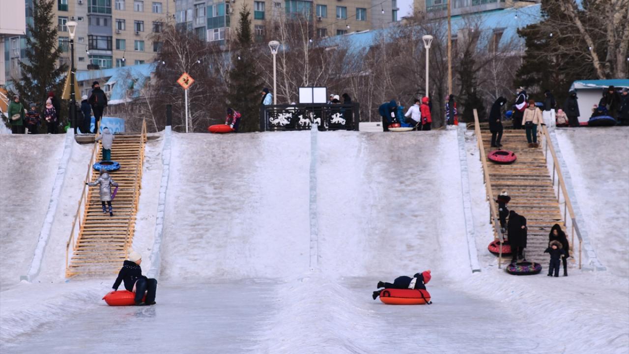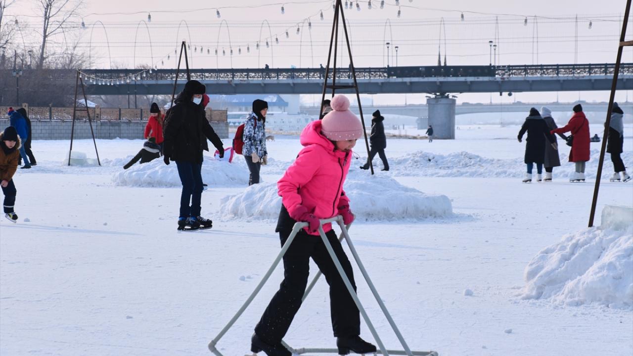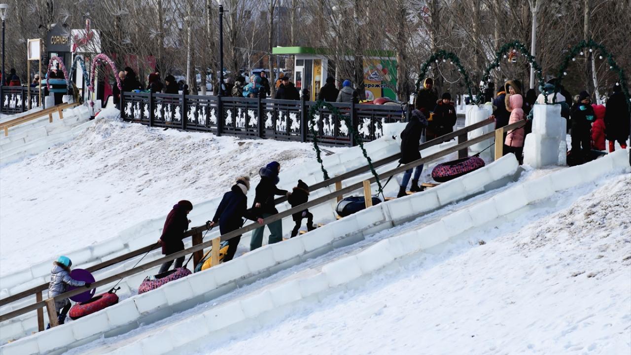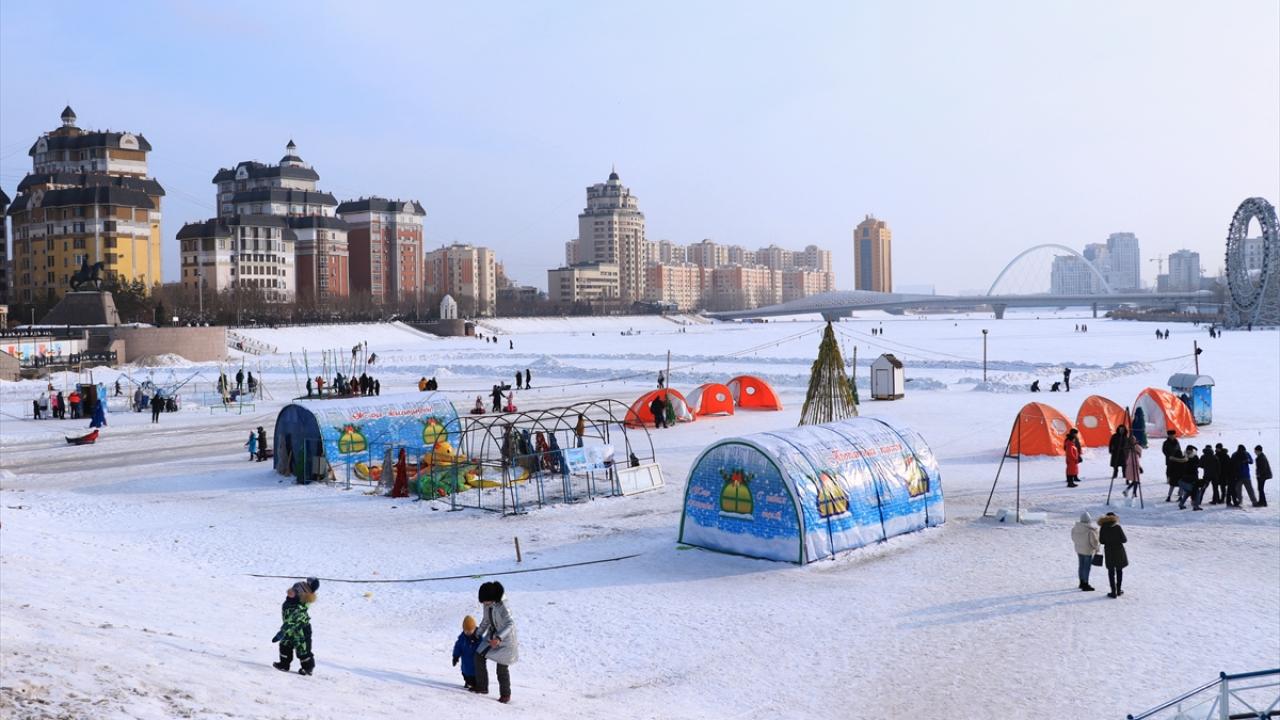 Kazakistan'da vatandaşlar, şehrin simgesi haline gelen ve kışın yüzeyi buz tutan Esil Nehri kenarına akın etti. Gün boyu güzel havanın tadını çıkaran vatandaşlar yürüyüş yaptı. Çocuklar da kızak ve paten kayarak eğlendi.