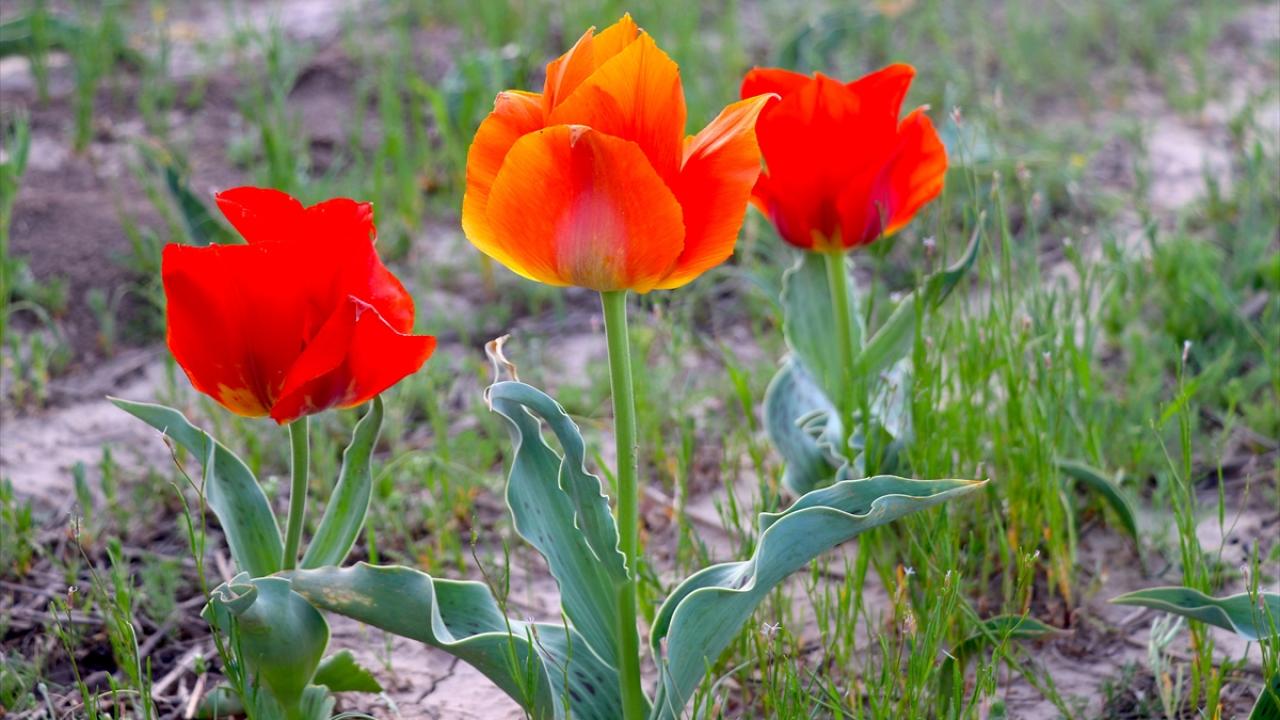 Kazakistan’da koruma altındaki bozkır laleleri doğayı kırmızıya boyadı