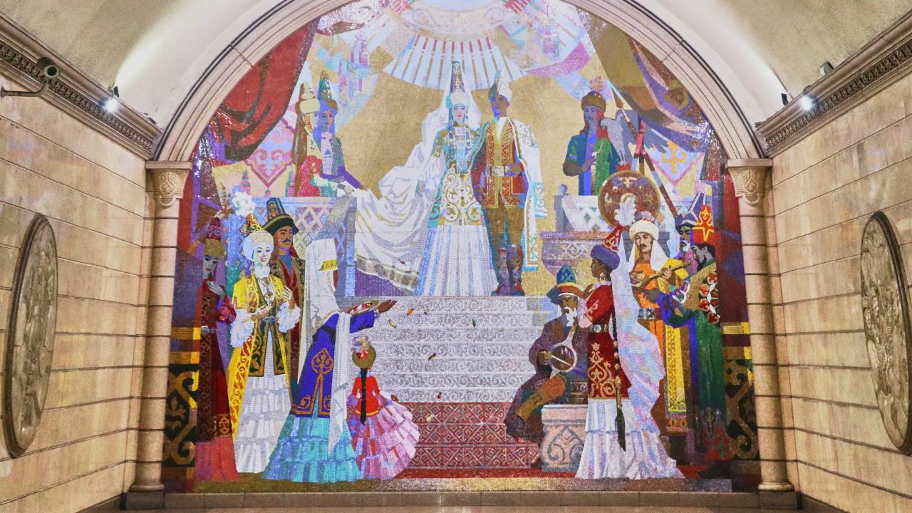 Kazakistan'daki Almatı Metrosu, milli motiflerle tasarlanan istasyonlarıyla turistlerin ilgi odağında