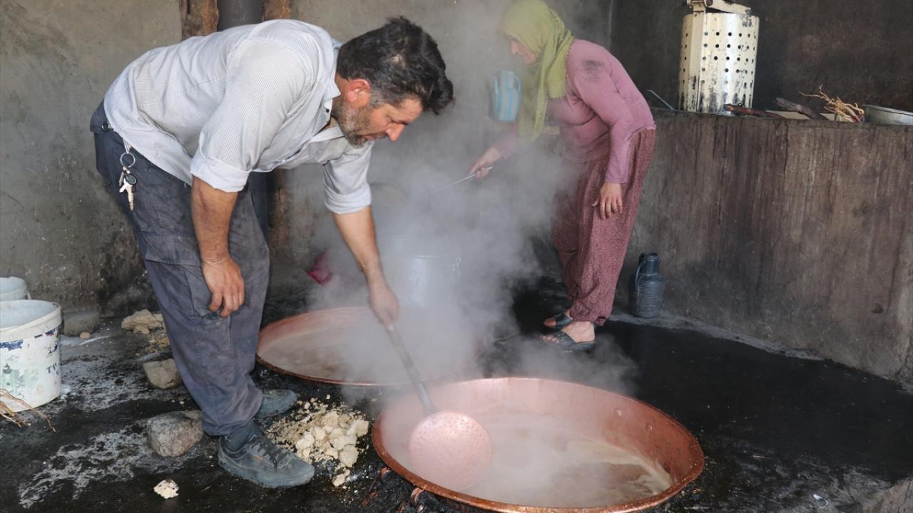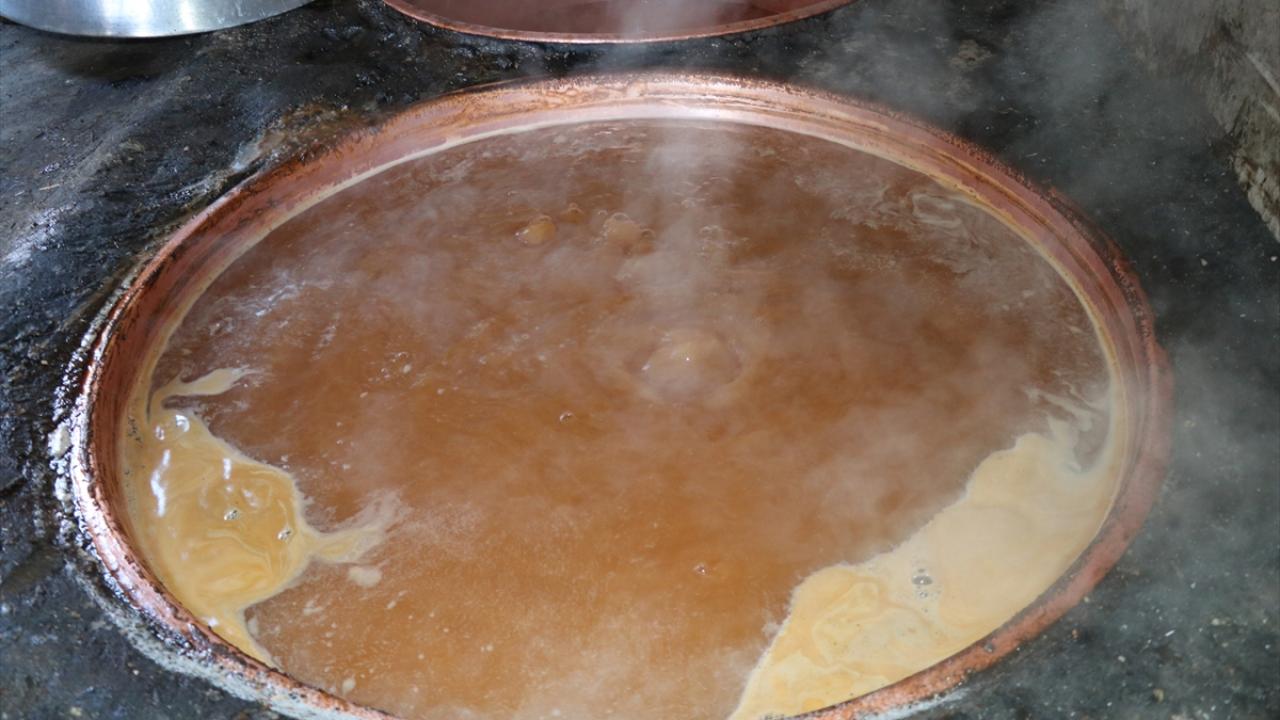 Sabahın erken saatinde bağa gidip üzümleri topladıklarını, traktörlerle taşıdıkları üzümleri ezip suyunu çıkardıktan sonra kazanlarda kaynattıklarını ifade eden Ekinci, yaklaşık 5 saat kaynattıkları üzüm suyunun soğumaya bırakıldıktan sonra kıvam aldığını belirtti.