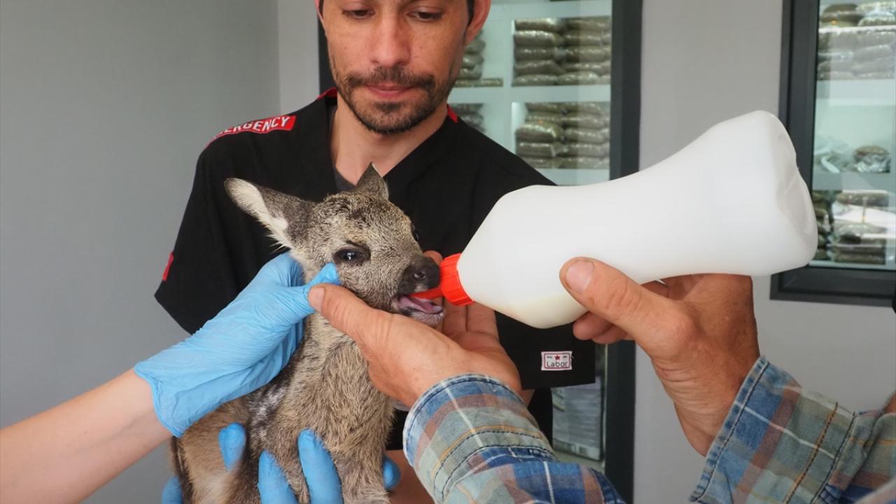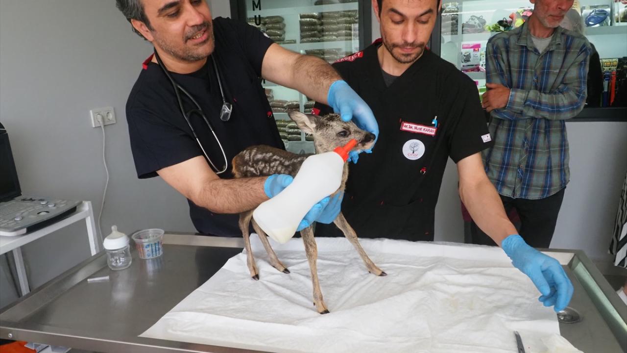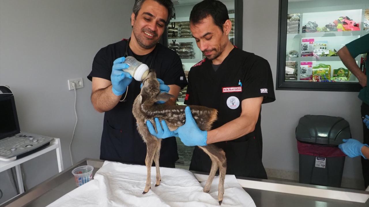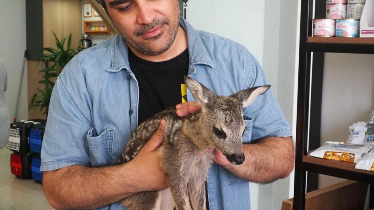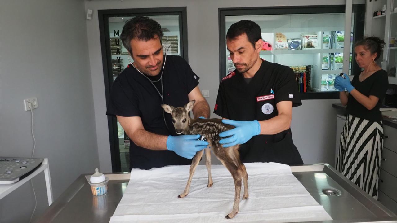 Yavru karacanın muayenesini yapan veteriner hekim Eda Ülkü Çınar, hayvanın iç, dış parazitlerini temizleyip vitaminlerini uyguladıklarını söyledi.