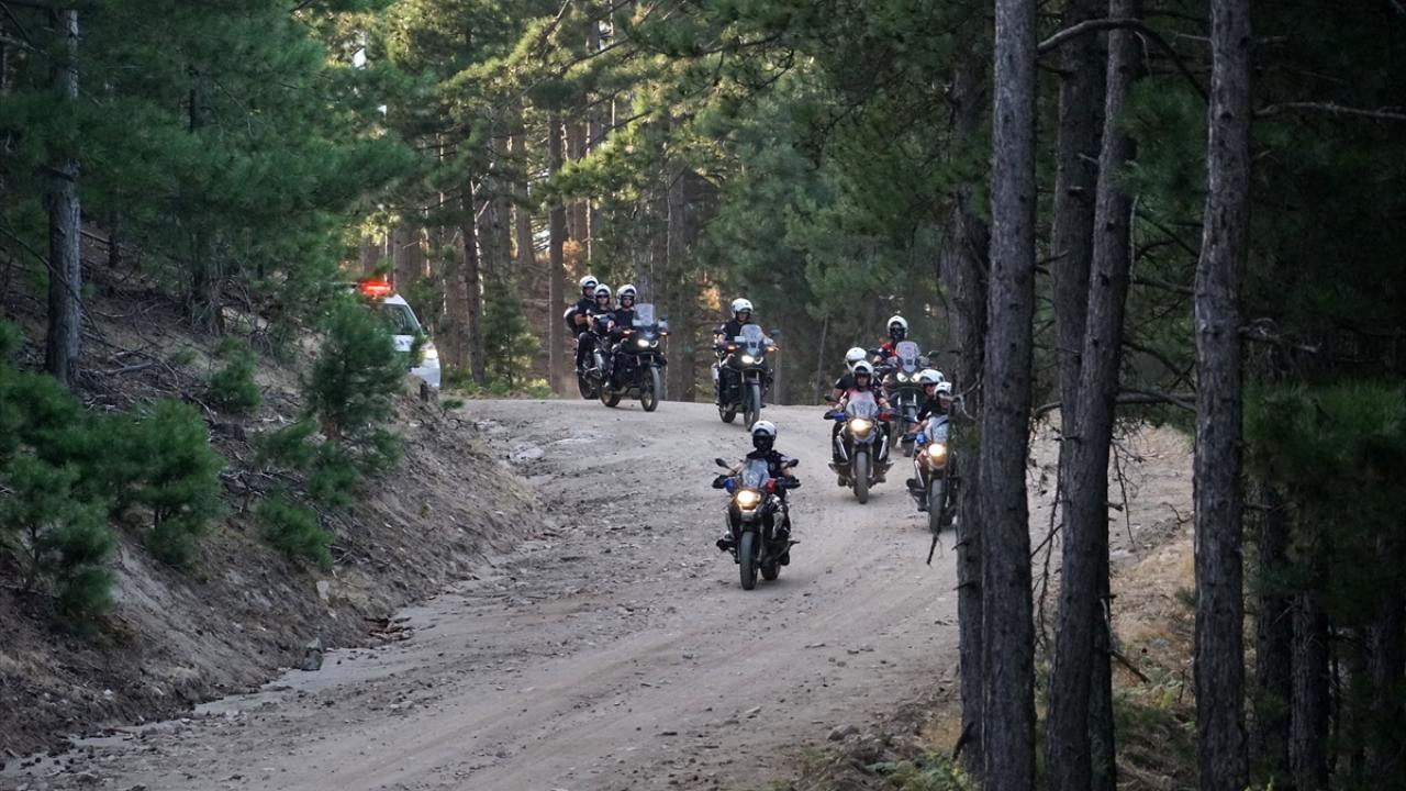 Orman İşletme Müdürlüğüne bağlı ekiplerle koordineli bir şekilde çalışma sürdüren motosikletli ekipler, zorlu arazi koşullarında seyrediyor, vatandaşlara uyarılarda bulunuyor.