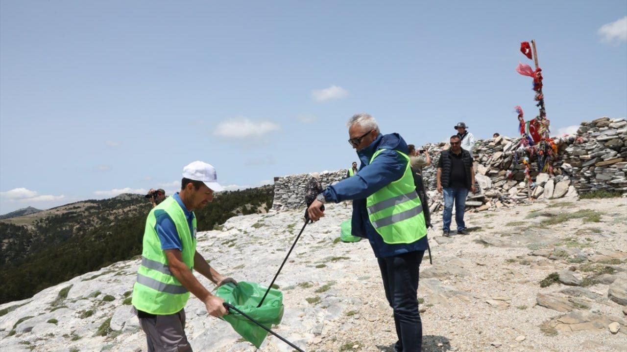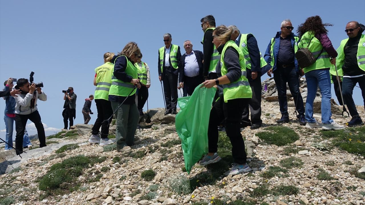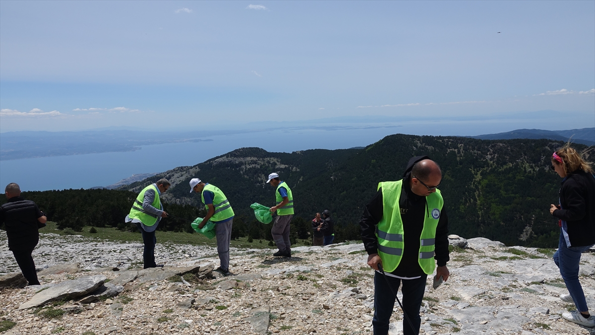 Kazdağları'nın 1726 rakımlı Sarıkız Tepesi'nde çevre temizliği yapıldı
