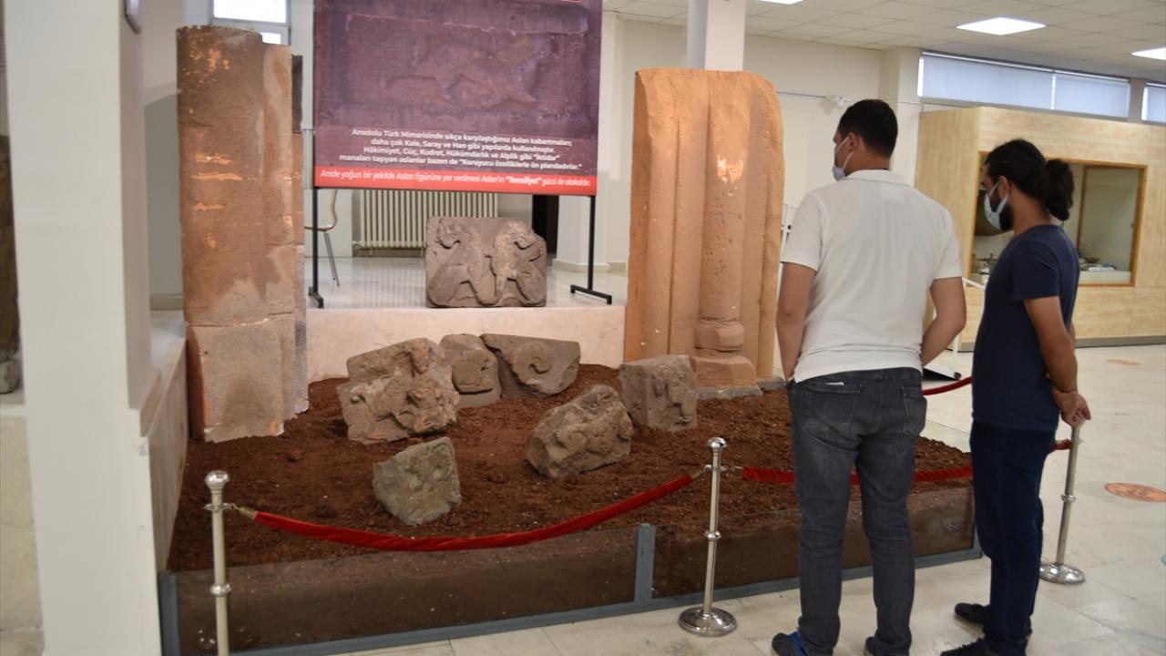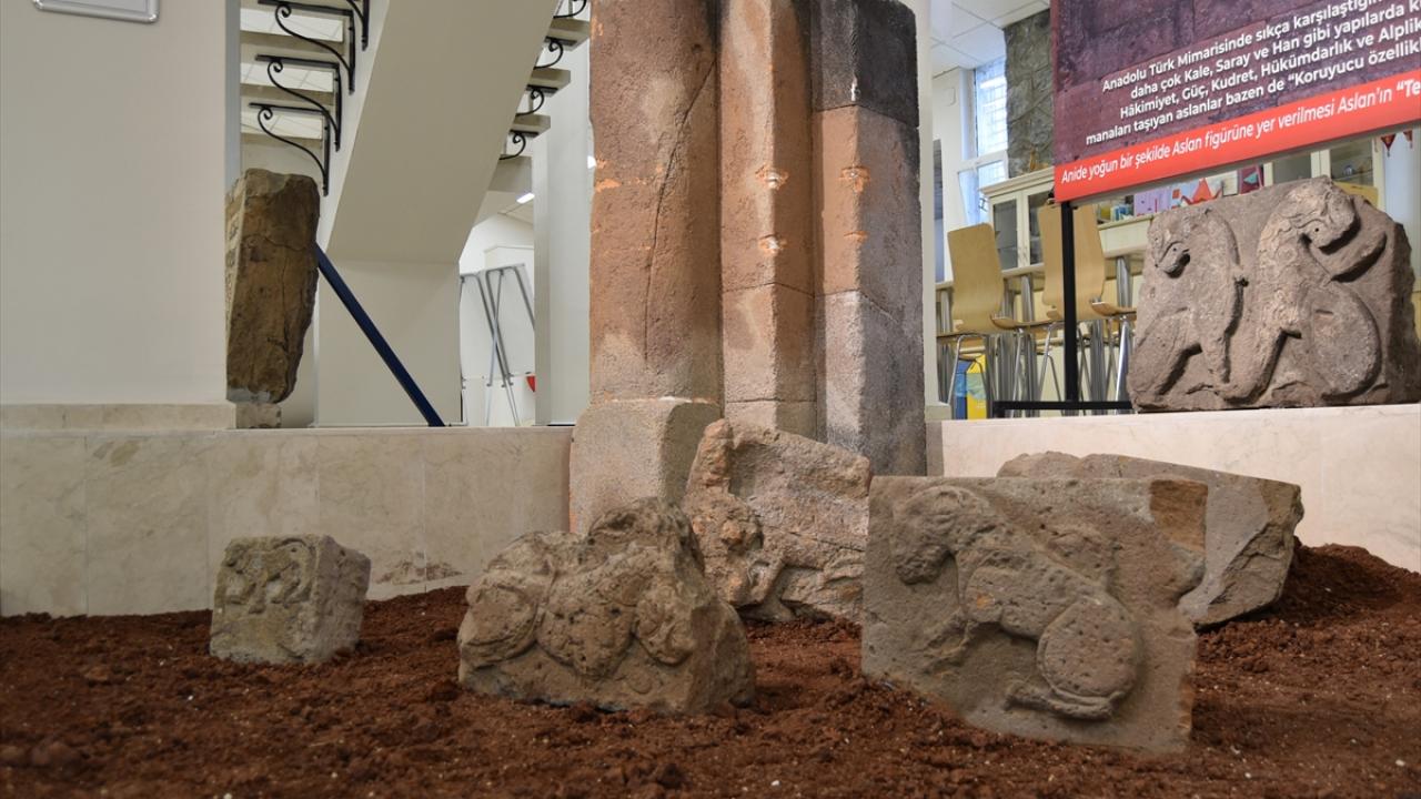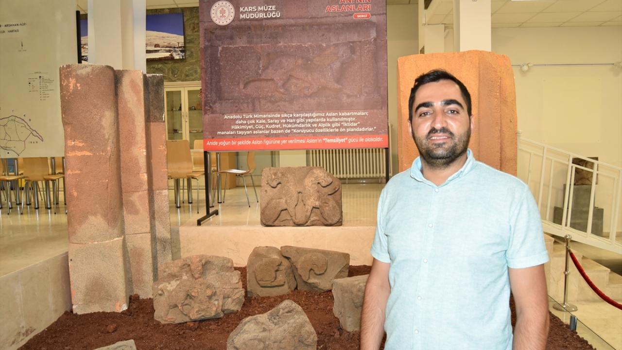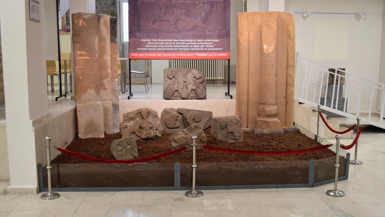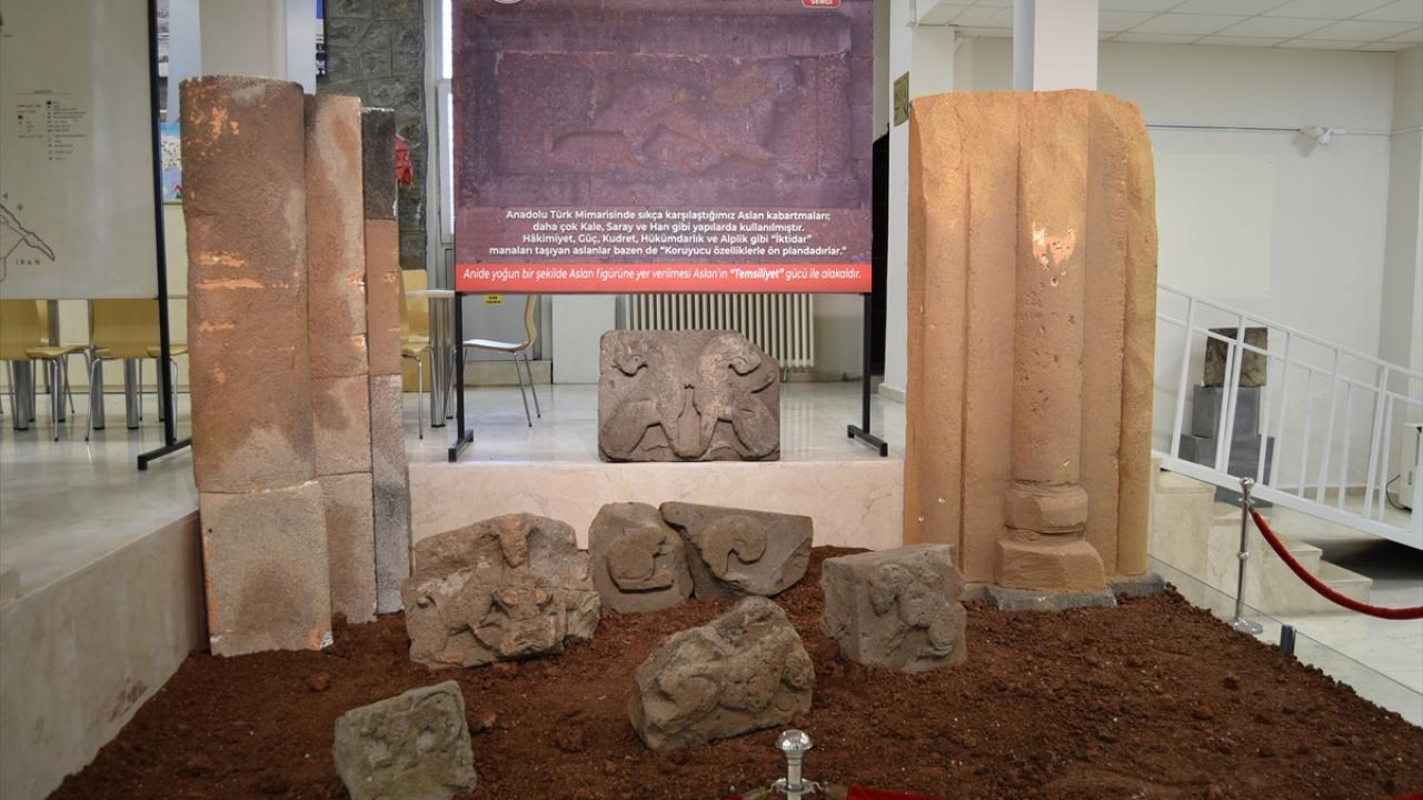 Kazılarda bulunan aslan kabartmalı taşların müzede sergilendiğini anlatan Çetin, "Aslan rölyefleri tarih boyunca gücü, kudreti, hakimiyeti temsil etmektedir. Ani`de de han, saray, kervansaray yapıların girişlerinde bu aslan rölyefleri kullanılmış ve şehre dışarıdan gelen insanların buradaki gücü görmeleri istenmiştir. Sergi alanımızda 6 aslan rölyefi sergilenmektedir. Bunlardan farklı yöne bakan iki aslan, ortada bir insan ve koltuk altına aldığı iki aslan ve çeşitli ebatlarda aslan rölyefleri sergilenmektedir. Sergimiz sürekli burada kalacak gelmek isteyen ziyaretçilerimiz buradan bu sergimizi görebilecek, herkesi müzemize bekliyoruz." diye konuştu.