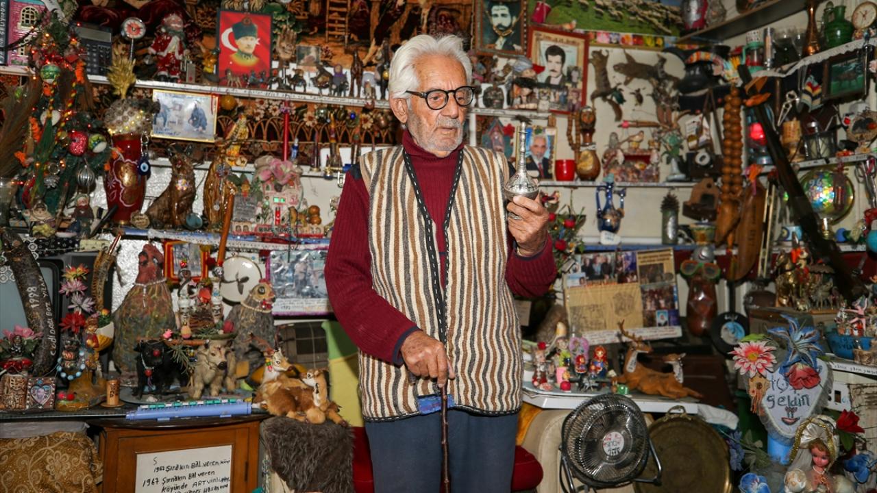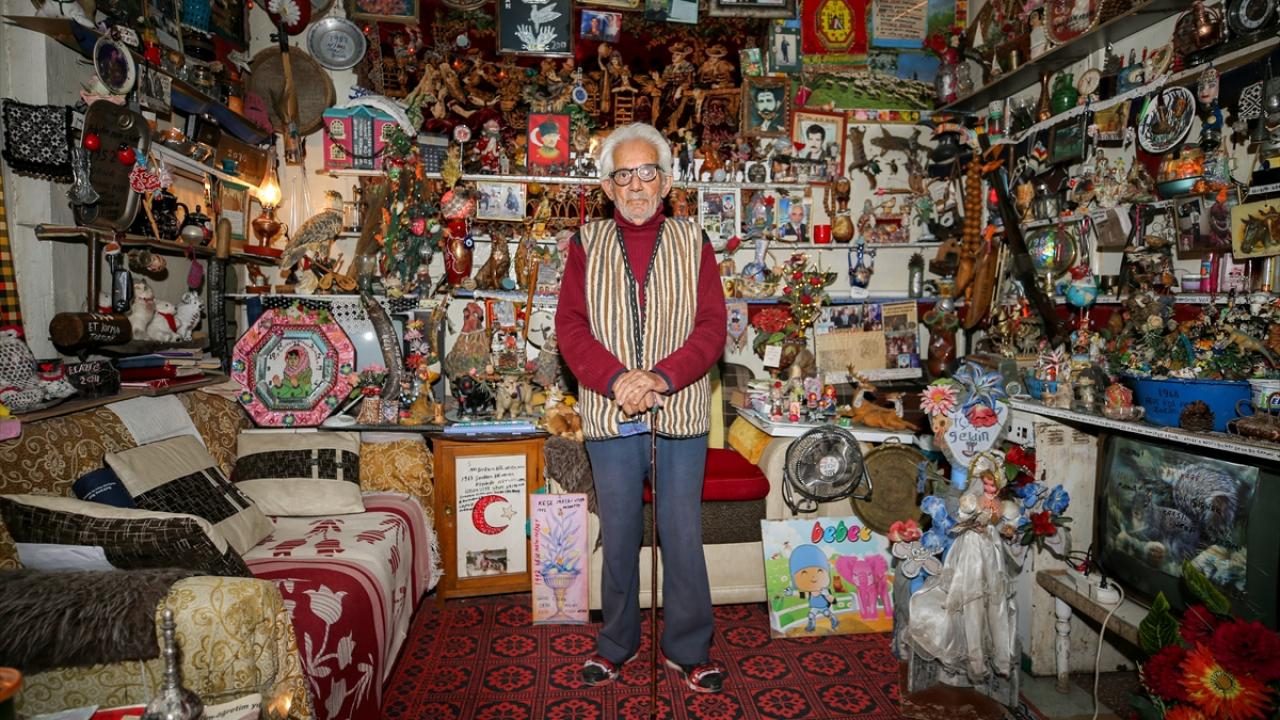 Diyarbakır'da yaşayan 92 yaşındaki Kazım Ertaş, 60 yıl boyunca kendisine hediye edilen ve görev yaptığı illerden topladığı eşyaları bir odaya sığdırdı.