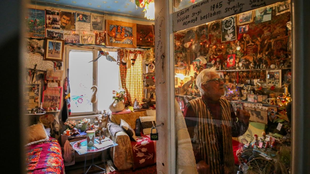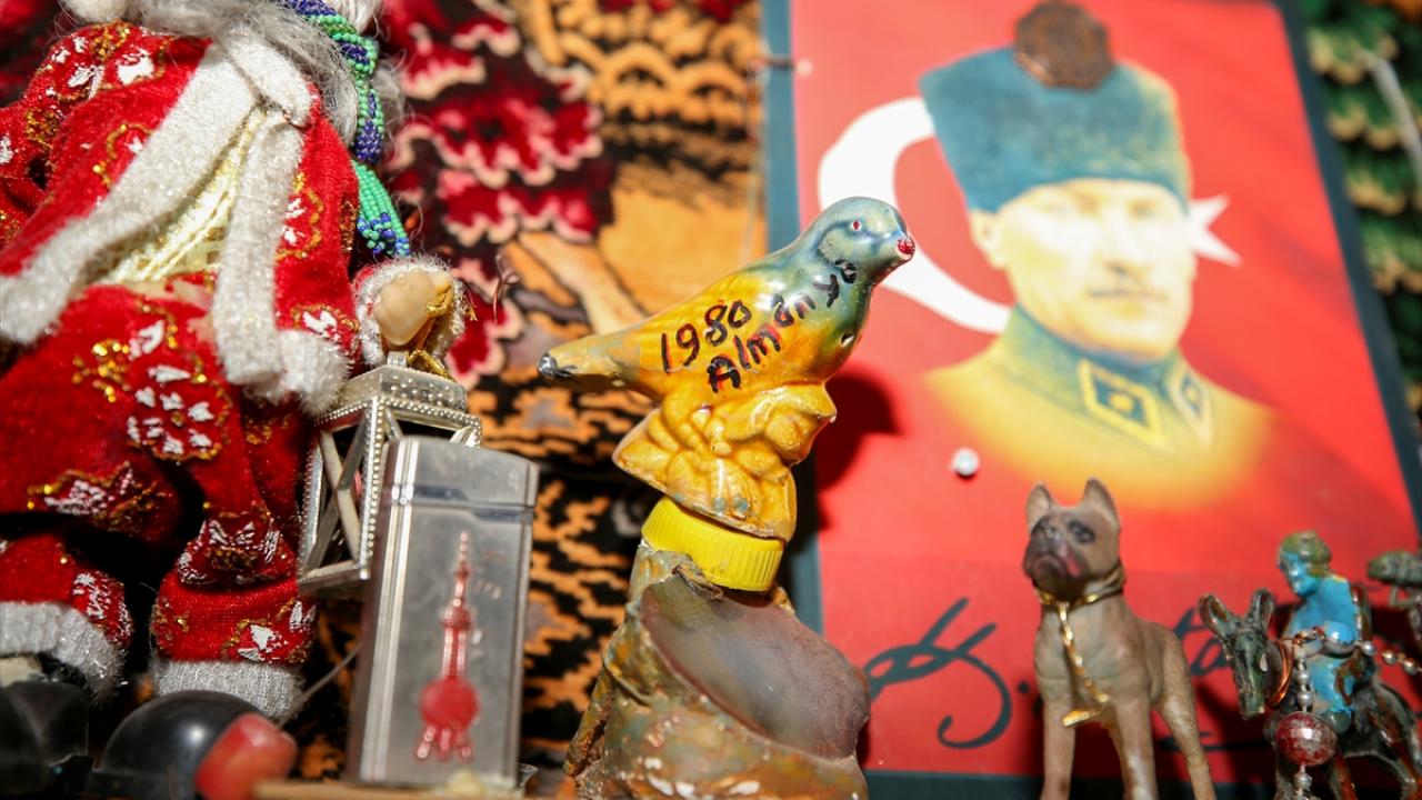 Kazım amca 60 yıllık hediyelikleri ve çeşitli illerden aldığı eşyaları bir odaya sığdırdı