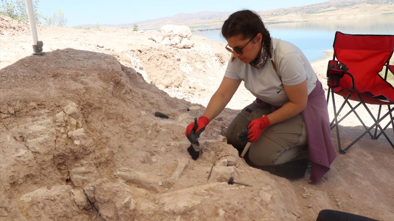 "Biz buraya ilk geldiğimizde megafauna dediğimiz büyük örnekler, baraj suyunun alçalıp yükselmesi ile ortaya çıkmıştı. Biz ilk sene ağırlıklı olarak o fosillerin kaldırma işlemlerini yürüttük. 2019 yılında filin atası denilen insanların mamut diye bildiği ama mamuttan da eski bir örnek bulmuştuk. Özellikle fosillerin tam olması ve büyük olması dikkati çekiyor. Bir de çeşitliliğimiz çok fazla. Çok farklı türlerde örnekler keşfettik. Geçen sene domuz kafatası çıktı. Her sene burası bizi şaşırtıyor, farklı farklı çeşitli türler bekliyoruz. Fosiller buraya sürüklenmiş olabilir, iç içe toplu bir şekilde ölüm gerçekleşmiş olabilir. Burada üstünü açarak onu tespit ediyoruz."