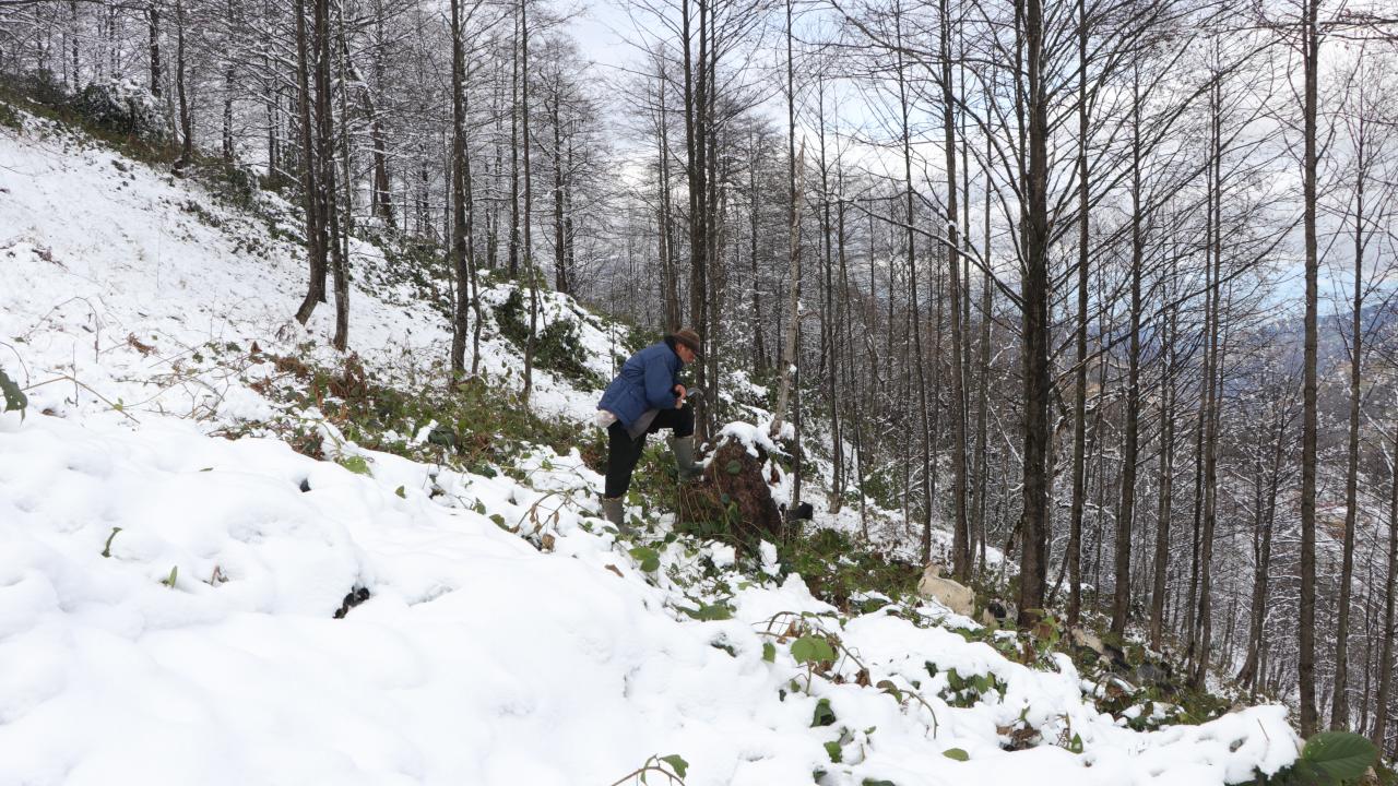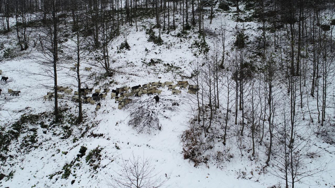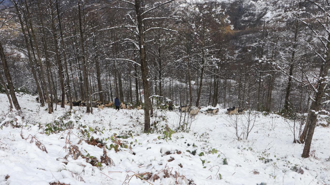 Yanından orağı da eksik olmayan Köse, hayvancılığın en büyük girdilerinden olan yem maliyetlerini düşürmek için karlı ve soğuk havaya aldırış etmeden keçilerini otlatmaya devam ediyor.