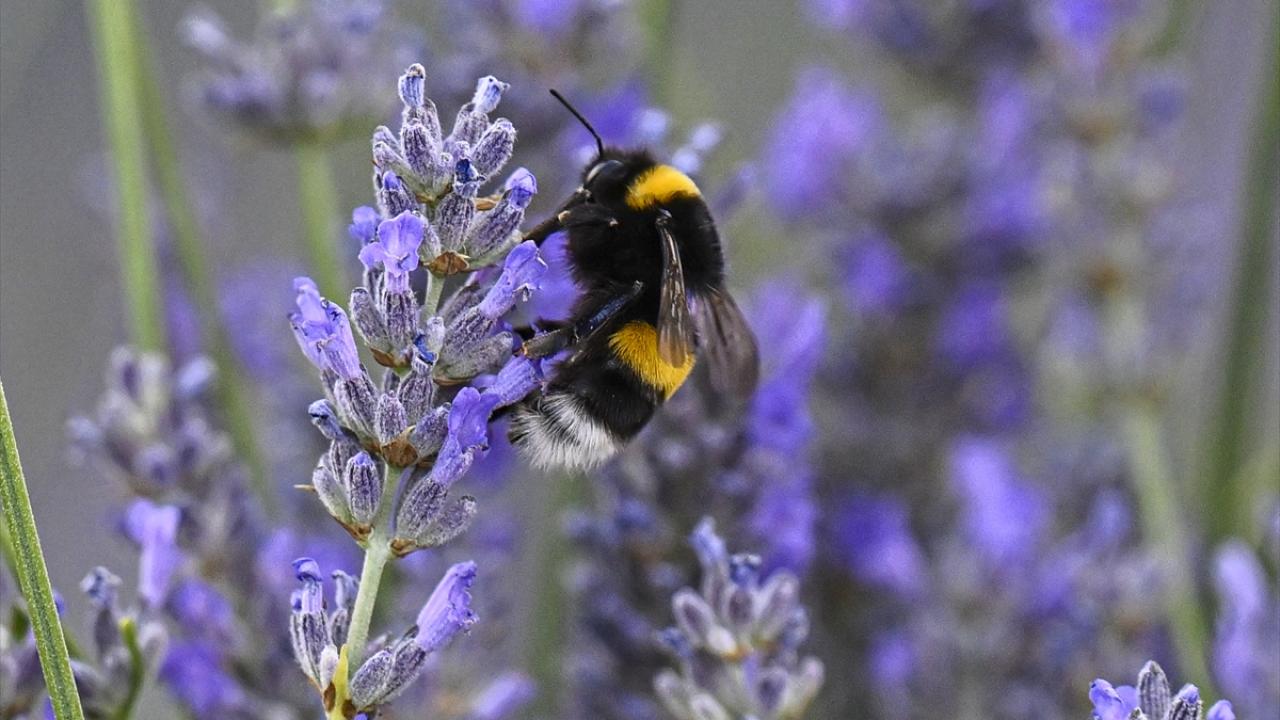 Zengin nektar içeriği dolayısıyla lavanta çiçeklerinden ayrılmayan arılar da lavanta bahçesine ayrı bir güzellik katıyor.