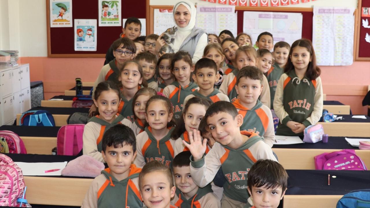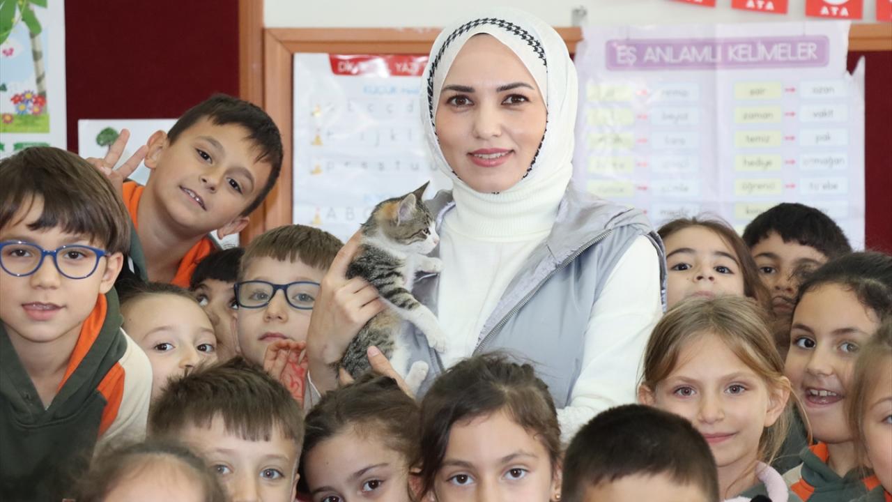 Sınıf öğretmeni Rabia Kazancıoğlu, öğrencilerin kediyi çok sevdiğini, bu sayede çocukların hayvan sevgisinin pekiştiği söyledi.