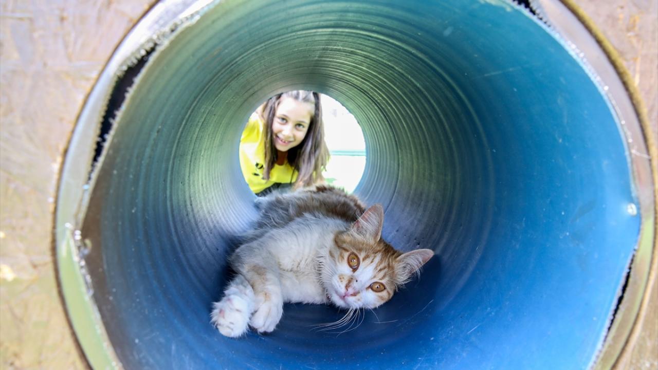 Ailesiyle kedileri görmeye gelen 7 yaşındaki Eslem Gülşah Yücedağ, kediler için hazırlanan alanı çok beğendiğini söyledi.