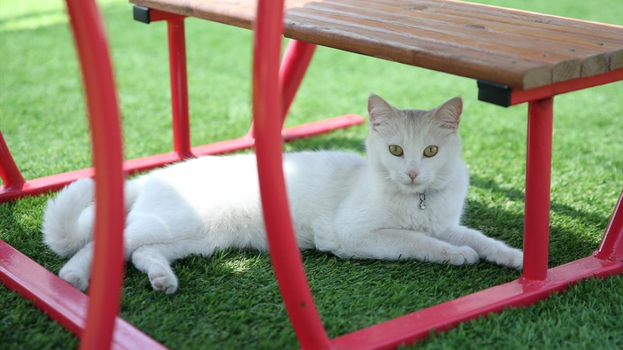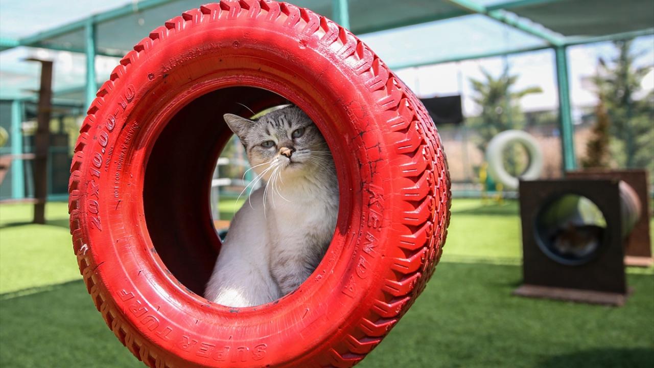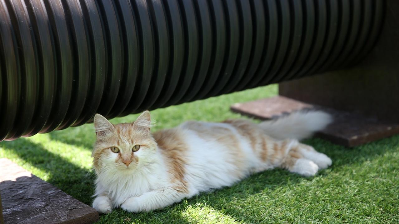 Veteriner hekim gözetimindeki kediler, kendileri için hazırlanan kum havuzu, oyun alanı, bungalov kulübeler, köprü, yapay çim, tünel, tırmanma parkuru, tırmalama ağacı gibi alanlarda vakit geçiriyor.