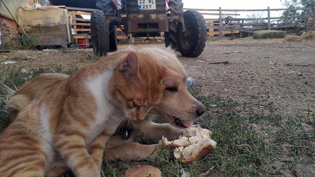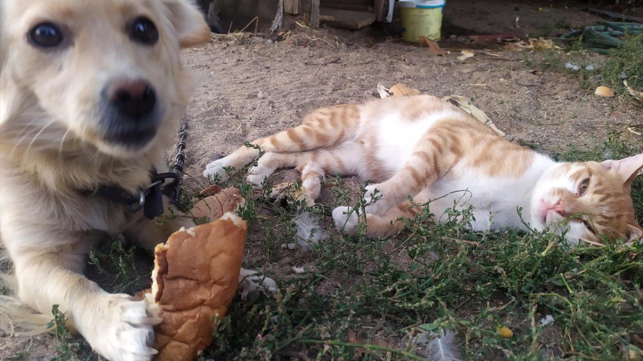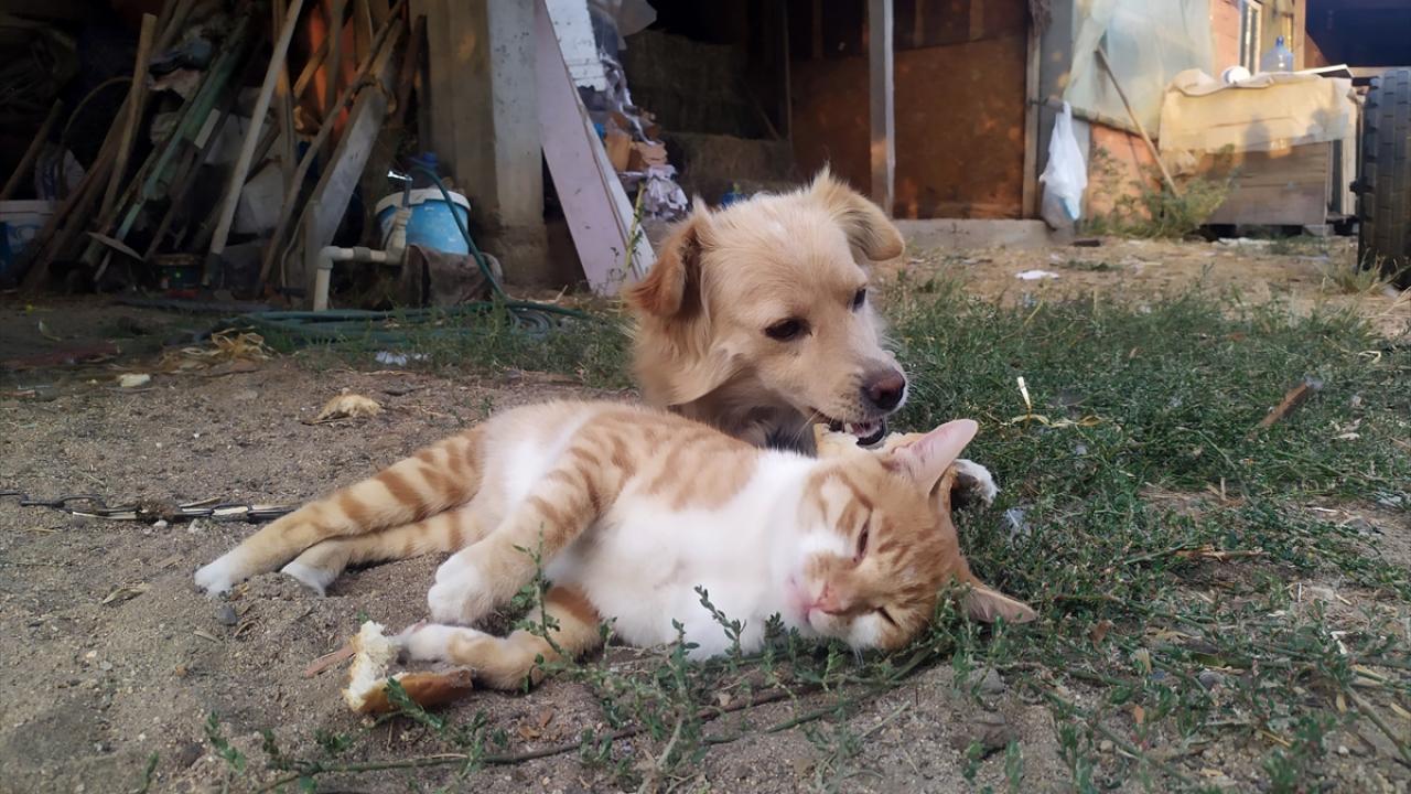 Aynı kaptaki yemeği paylaşan Sarıkız ve Sarman dostça yaşam sürüyor, zaman zaman birlikte oyun oynuyor.