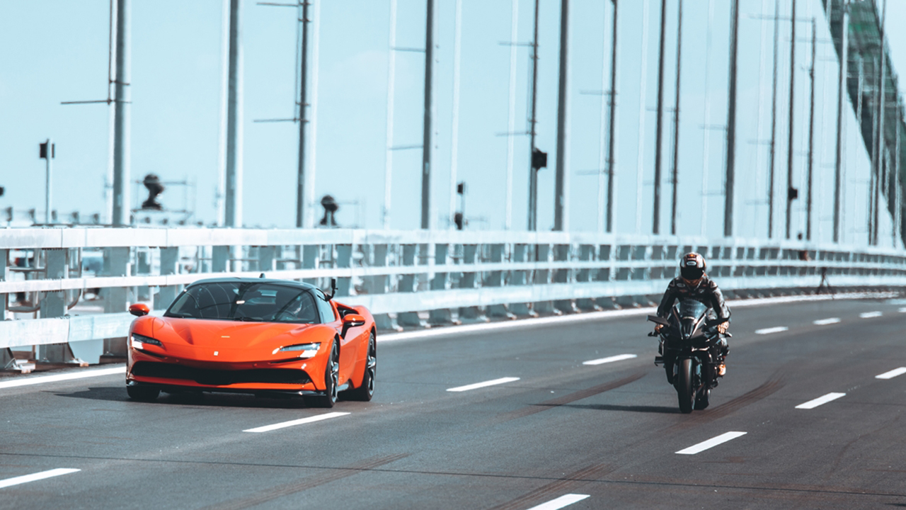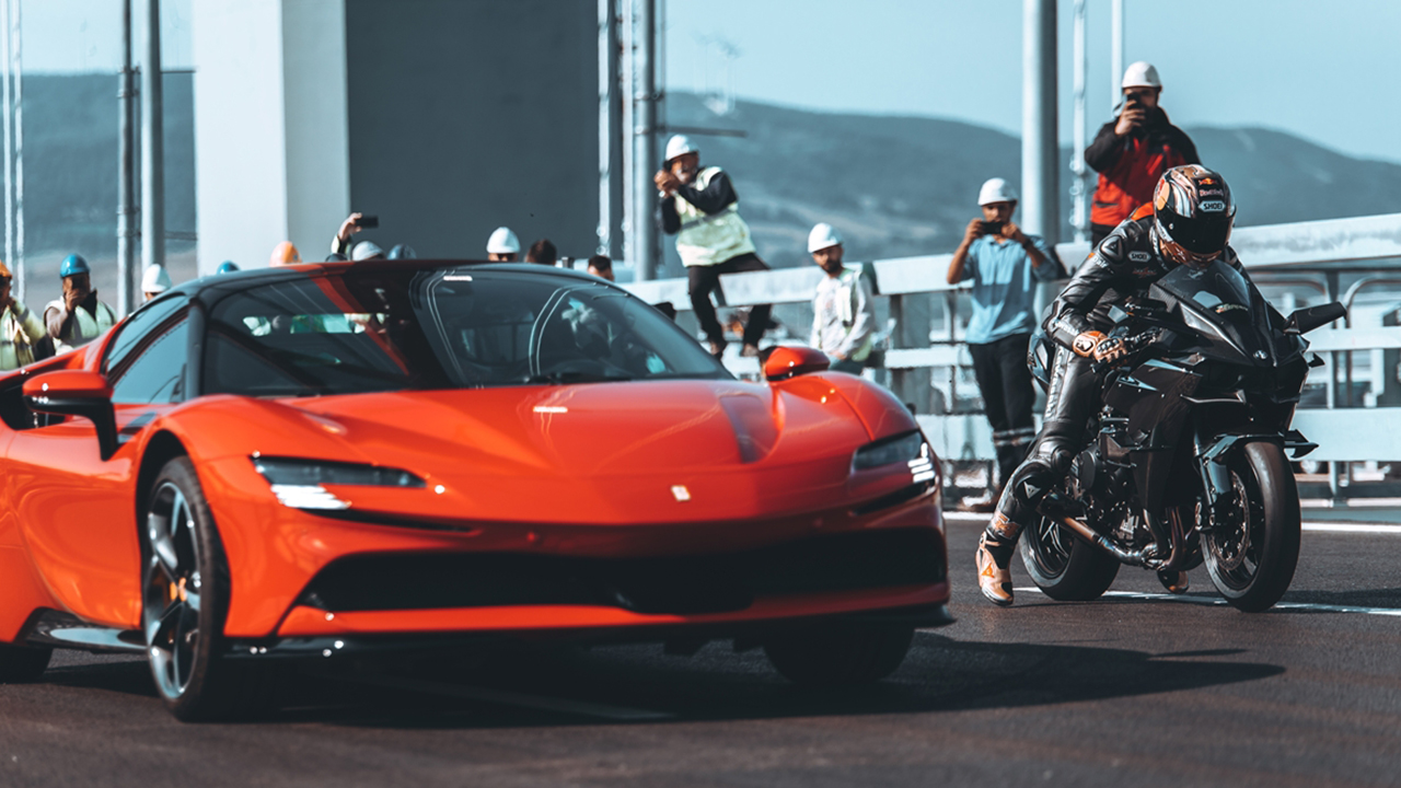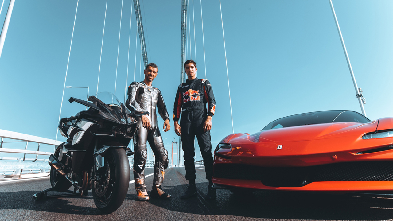 Sofuoğlu, Kawasaki tarafından "fabrikasyon yapılan dünyanın en hızlı motosikleti" HR2`ye binerken, Toprak ise Ferrari tarafından şu ana kadar yapılmış en hızlı araba SF90`ın direksiyonu başına geçti.