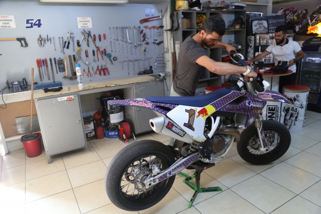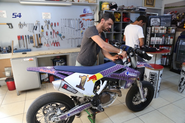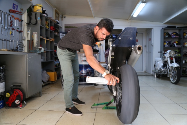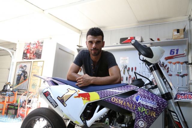 Kenan Sofuoğlu, motosikletini ısıtıyor