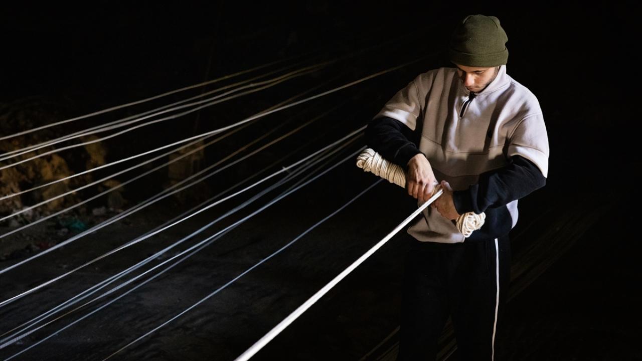 Gaziantep'te asırlık bir kültür olan kendirciliği yaşatmaya devam eden ustalar, loş ve nemli mağaralardaki el yapımı tezgahlarda iplik üreterek geçimlerini sağlıyor.