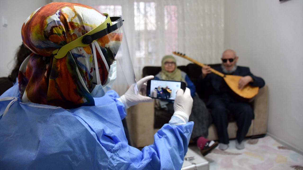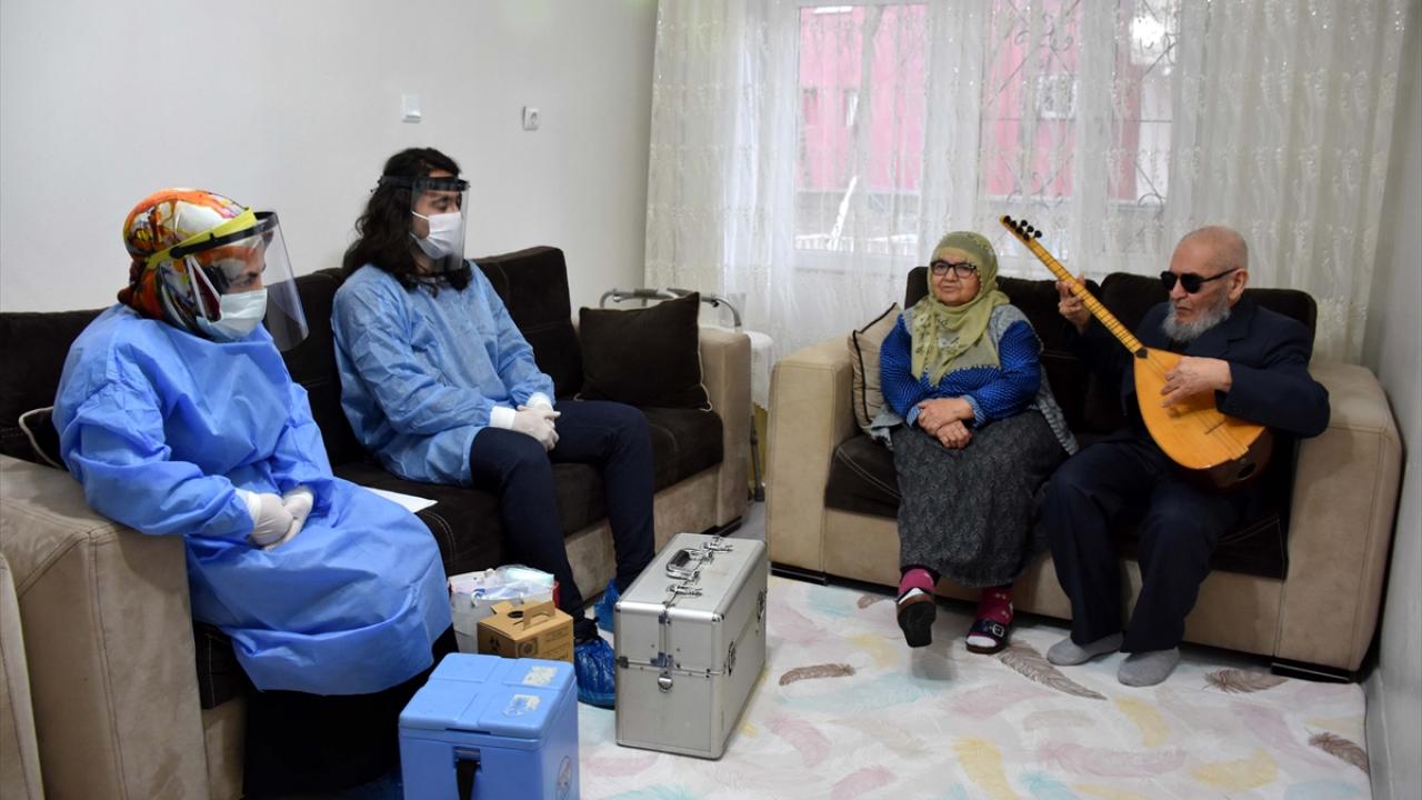Muş'ta yeni tip koronavirüs (Covid-19) nedeniyle 10 aydır evden çıkmayan 73 yaşındaki görme engelli Hanifi Ünver, kendisine aşı yapan sağlık ekiplerine bağlama çaldı.