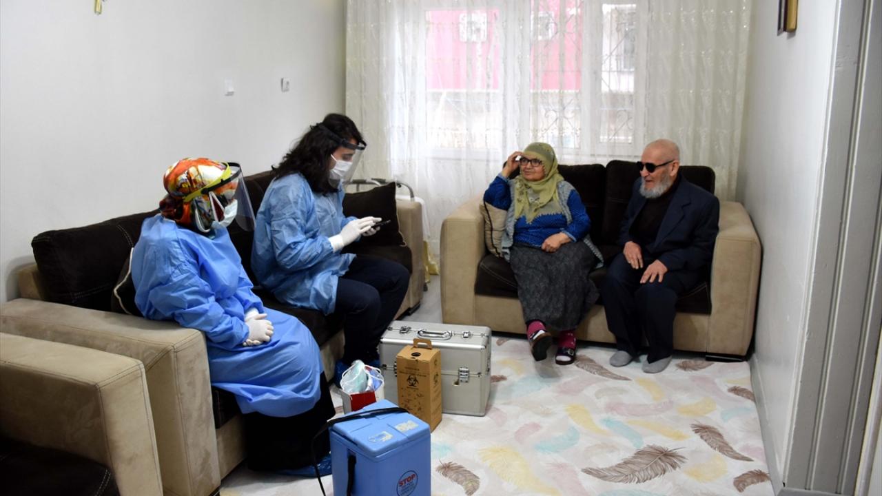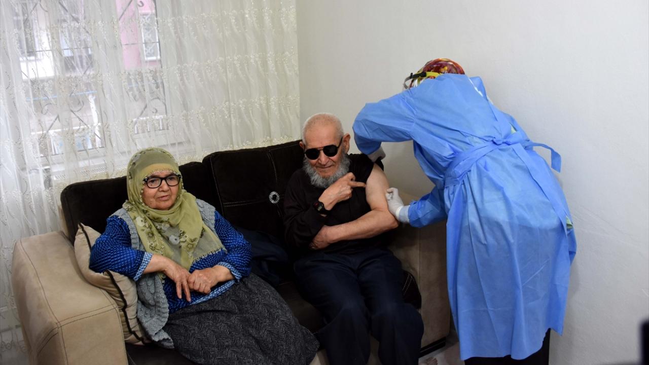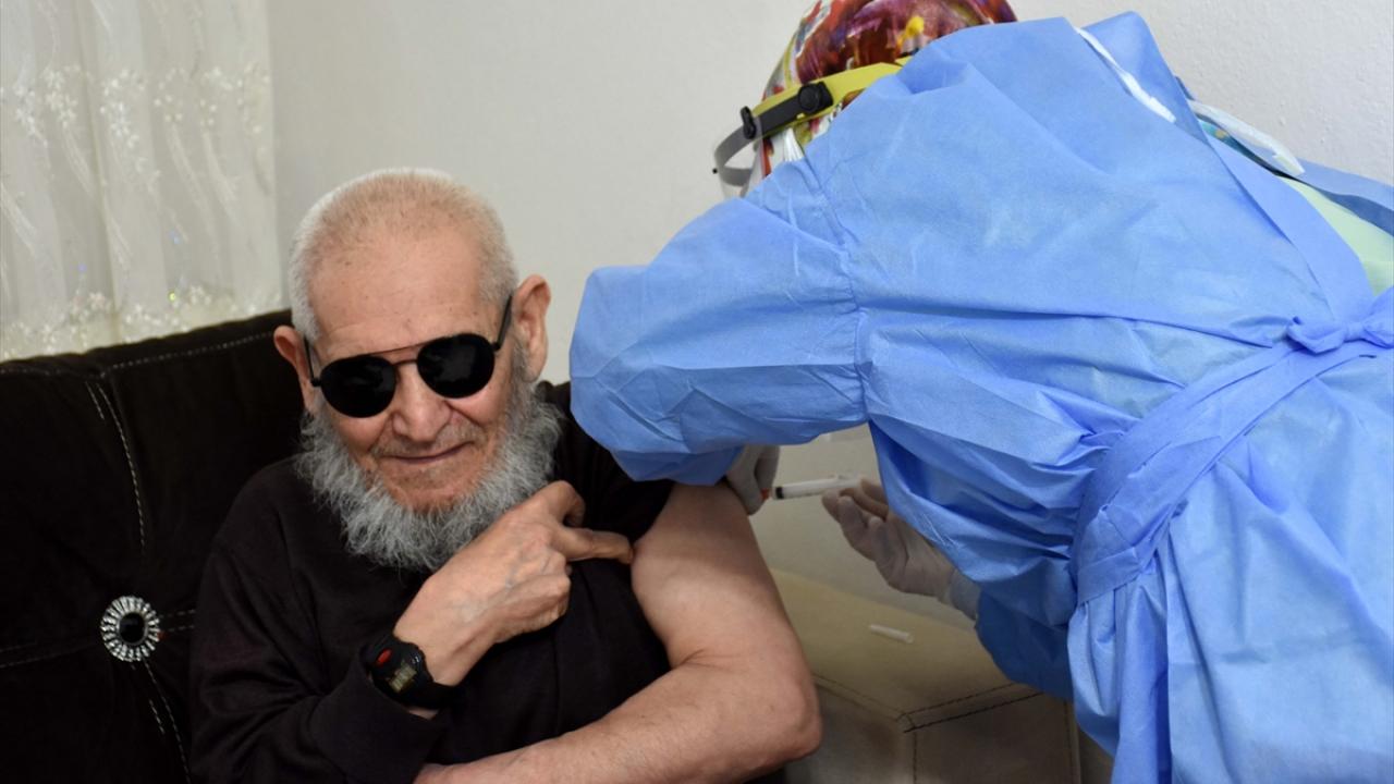 Sağlık ekipleri de merkeze bağlı 15 Temmuz Milli İrade ve Demokrasi Mahallesi`nde yaşayan kızının evine giderek Ünver`e Covid-19 aşısı yaptı.