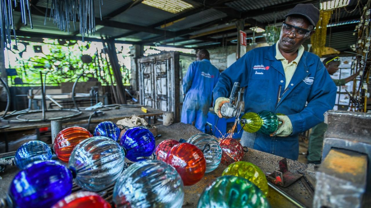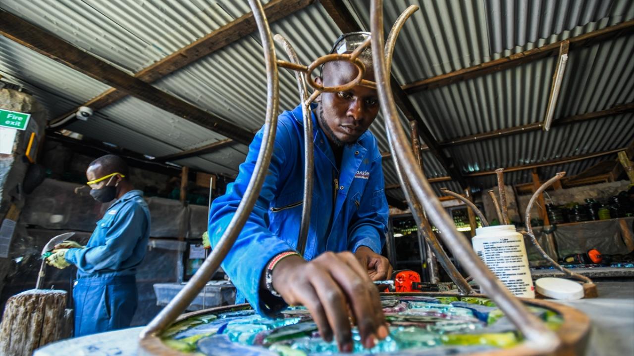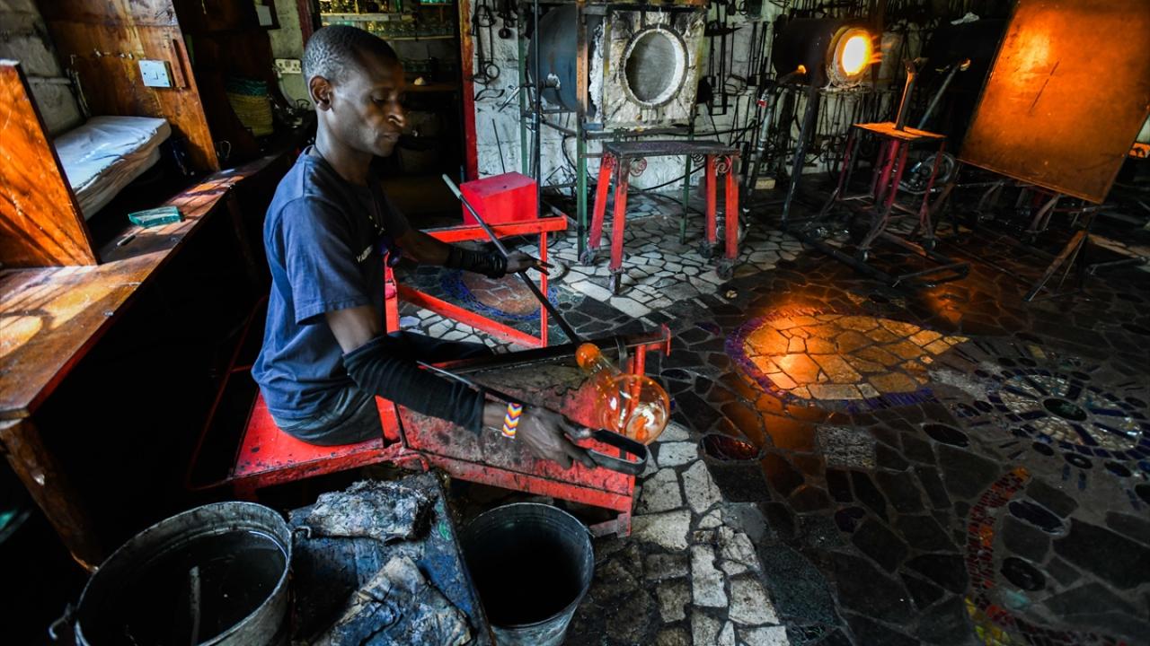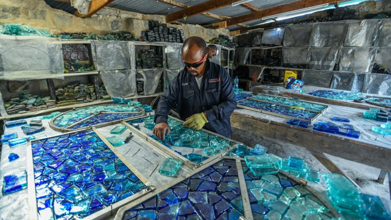 Kenya'nın Kajiado kentine bağlı Oloosirkon beldesinde faaliyet gösteren bir işletme, atık camları erittikten sonra çeşitli aşamalardan geçirerek birer sanat eserine dönüştürüyor.