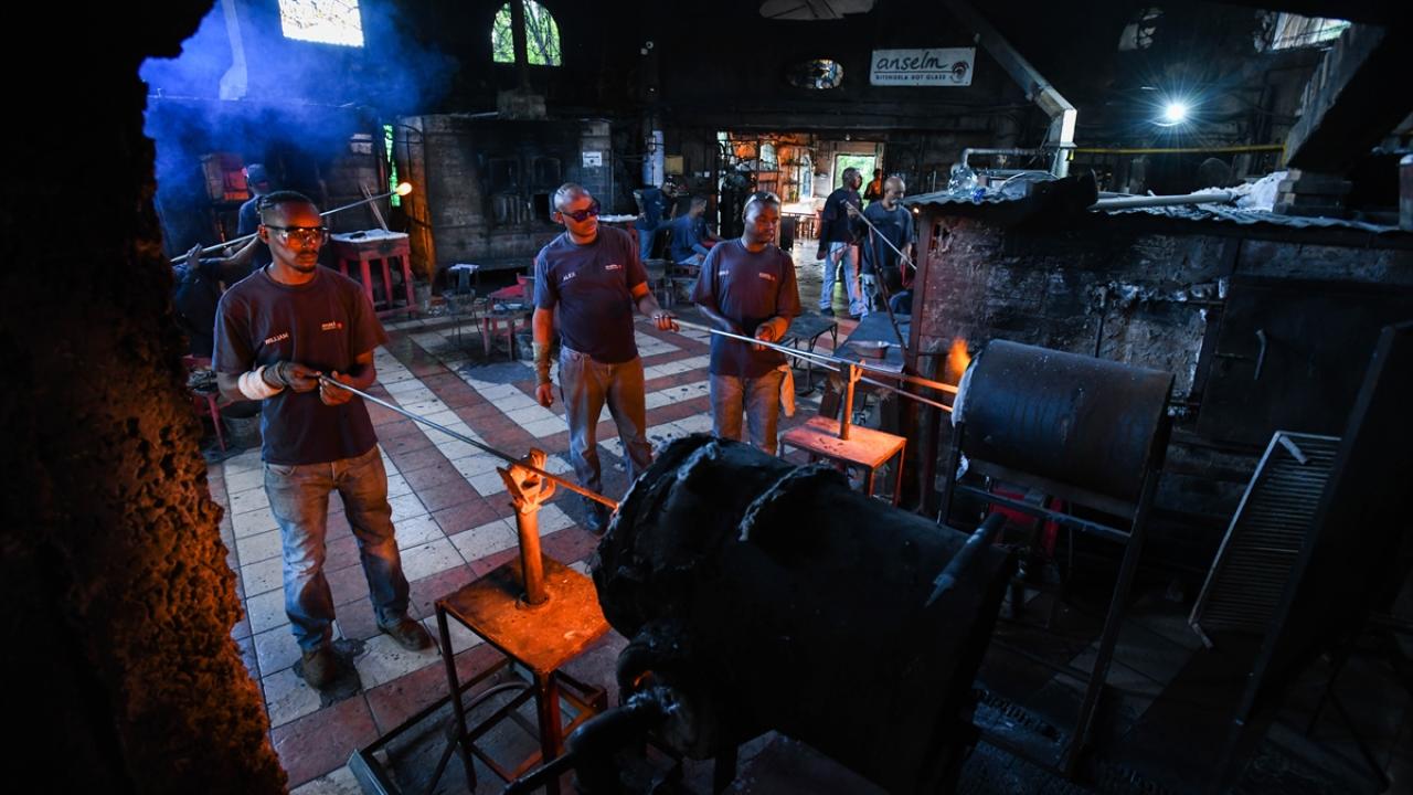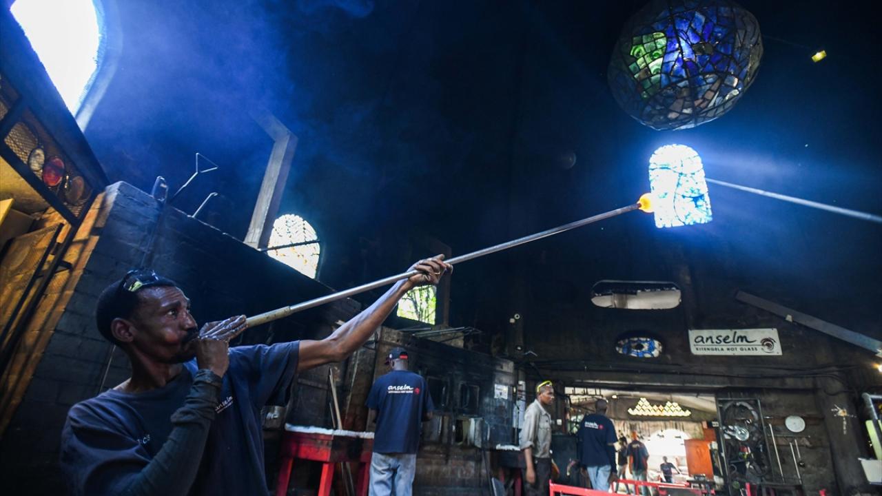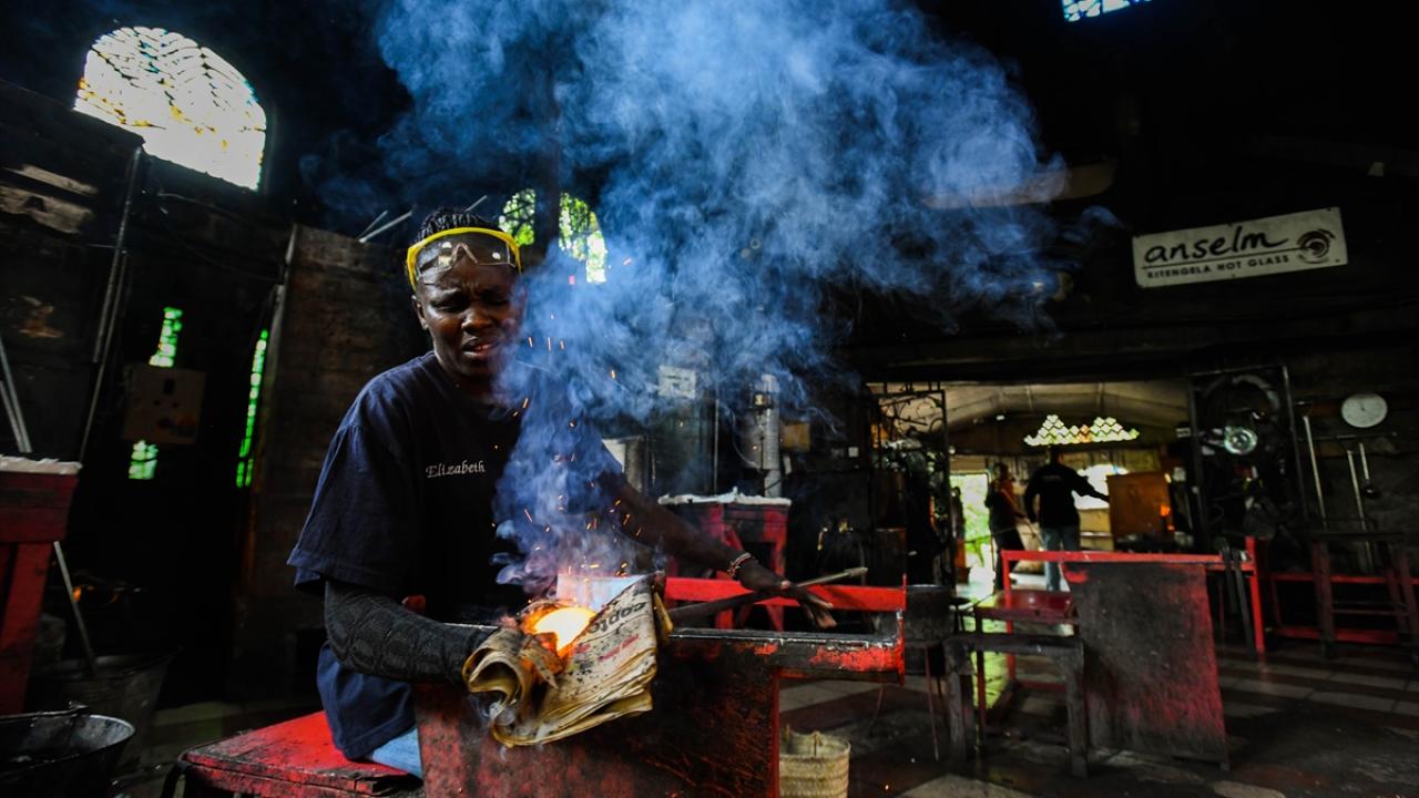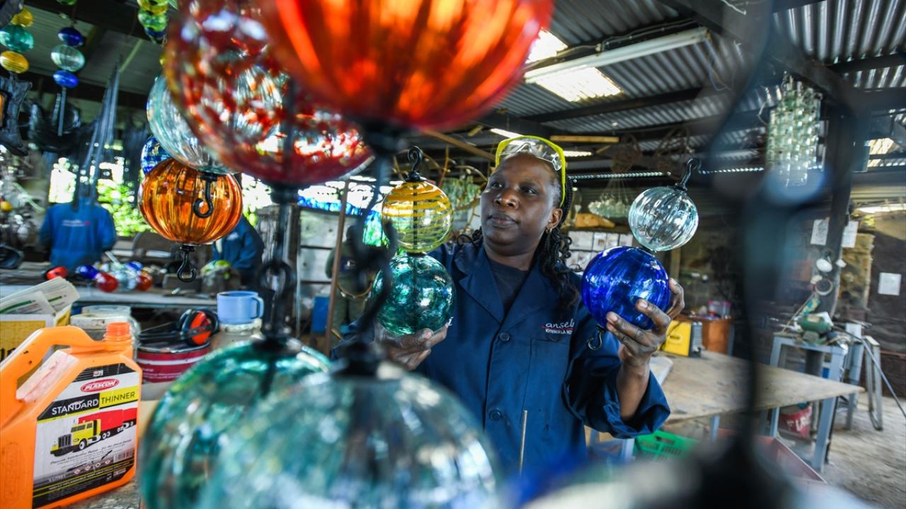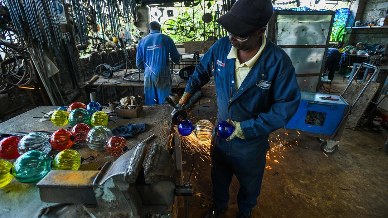 Kenya'nın Kajiado kentine bağlı Oloosirkon beldesinde faaliyet gösteren bir işletme, atık camları erittikten sonra çeşitli aşamalardan geçirerek birer sanat eserine dönüştürüyor.
