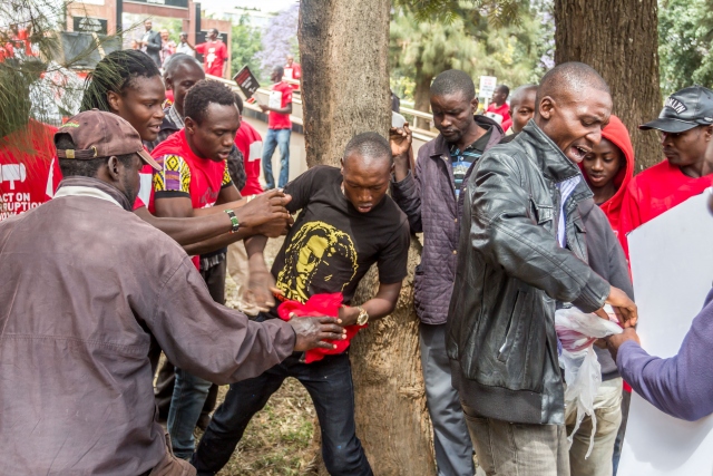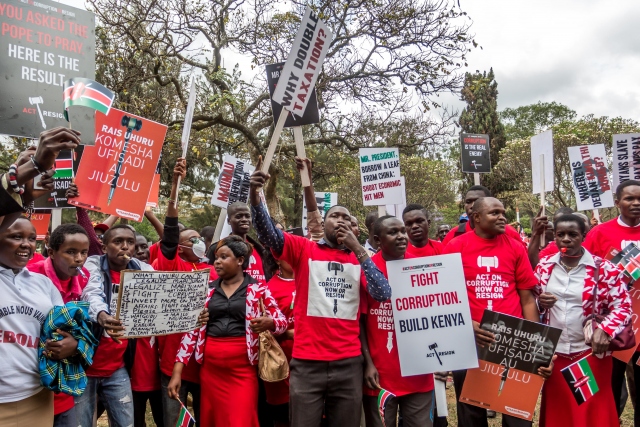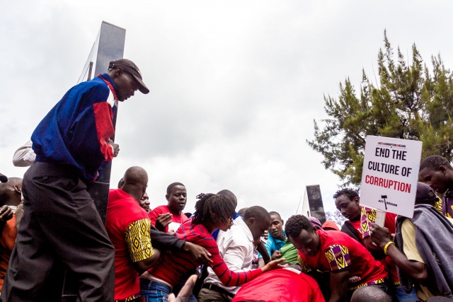 Kenya'nın başkenti Nairobi'deki Uhuru Özgürlük Parkı'nda toplanan bir grup, Sağlık Bakanlığı binasına yürümek istedi. Kenya İnsan Hakları Komisyonu ve PAWA 254, Kenya'daki Uluslararası Şeffaflık Örgütü gibi sivil toplum örgütlerinin de katıldığı gösteride, hükümetin yolsuzluklara karşı önlem almaması ve sağlık için ayrılan fonların kötüye kullanılması protesto edildi. Yürüyüşe geçen göstericilere, güvenlik güçleri göz yaşartıcı gaz kullanarak müdahale etti.