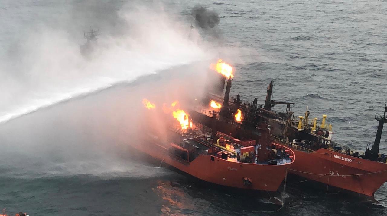 Rusya’ya bağlı Kerç boğazı açıklarında 22 gün önce alev alan ve 4 Türk, 10 Hindistan uyruklu denizcinin ölümüne neden olan yangın hala söndürülemedi.