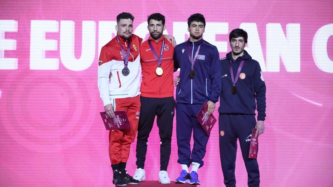 Macaristan`da düzenlenen Avrupa Güreş Şampiyonası`nda grekoromen stil 60 kiloda mücadele eden Kerem Kamal, altın madalya kazandı.