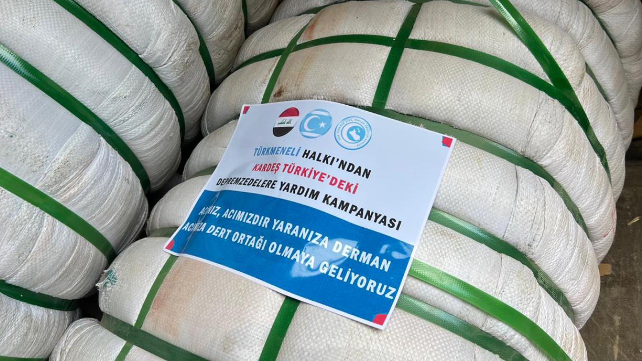 Irak'ın Kerkük kentindeki Türkmen Sivil Toplum Örgütleri, Kahramanmaraş merkezli depremlerden etkilenen illerdeki vatandaşlar için toplanan 7 tır dolusu malzemeyi Türkiye’ye gönderdi. Yardımların üzerinde "Acınız, acımızdır yaranıza derman, acınıza dert ortağı olmaya geliyoruz" yazıyor.