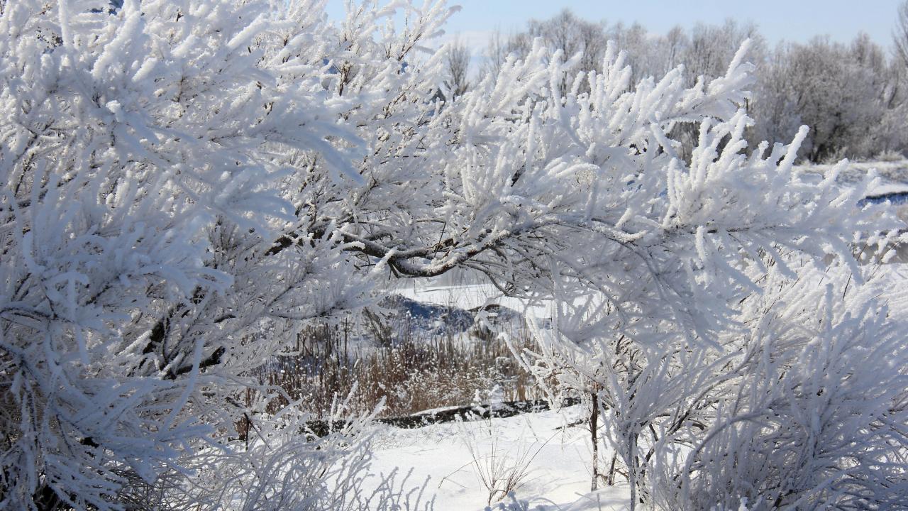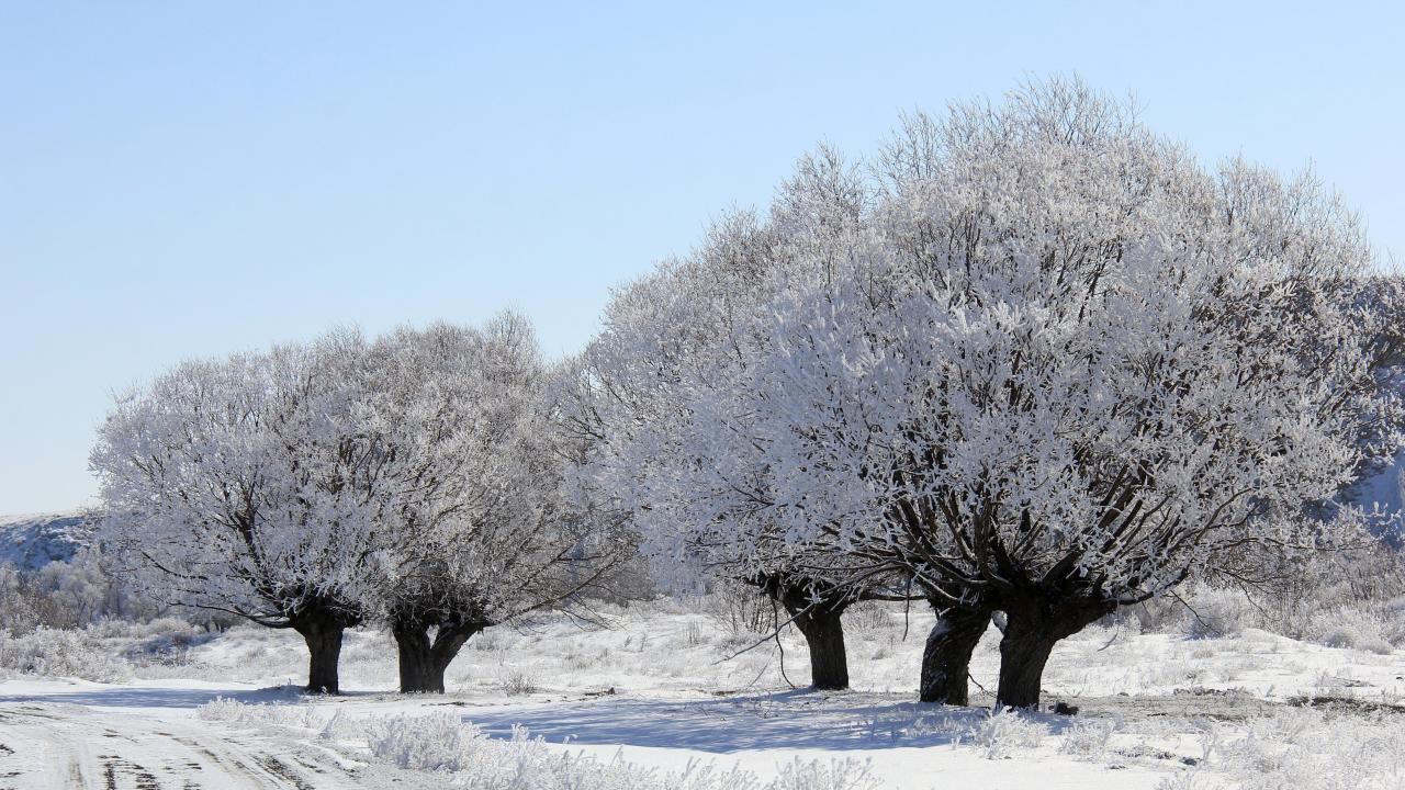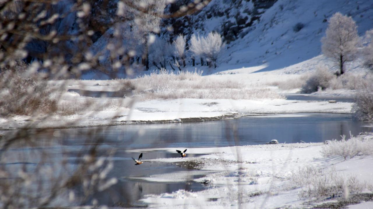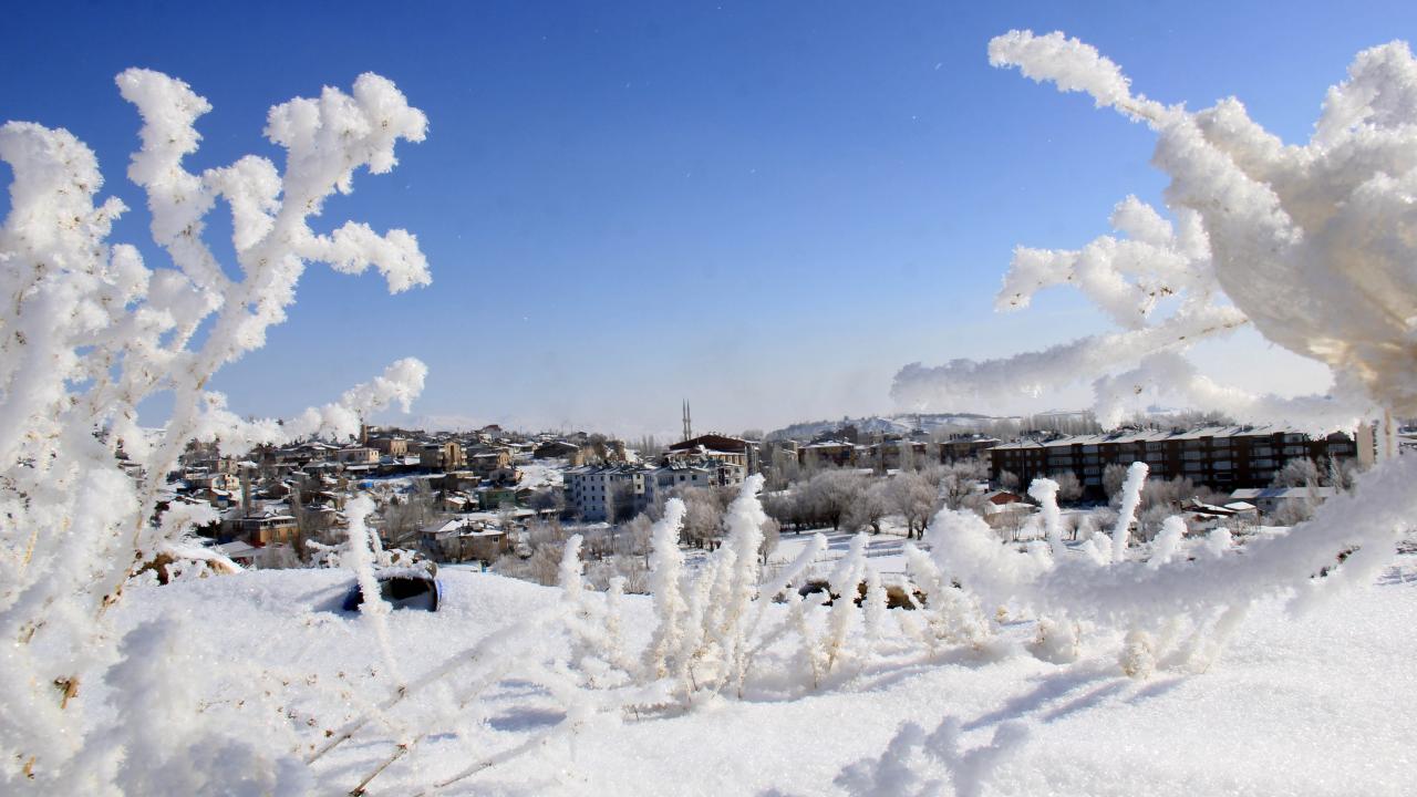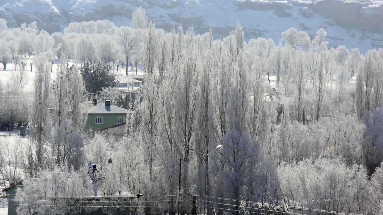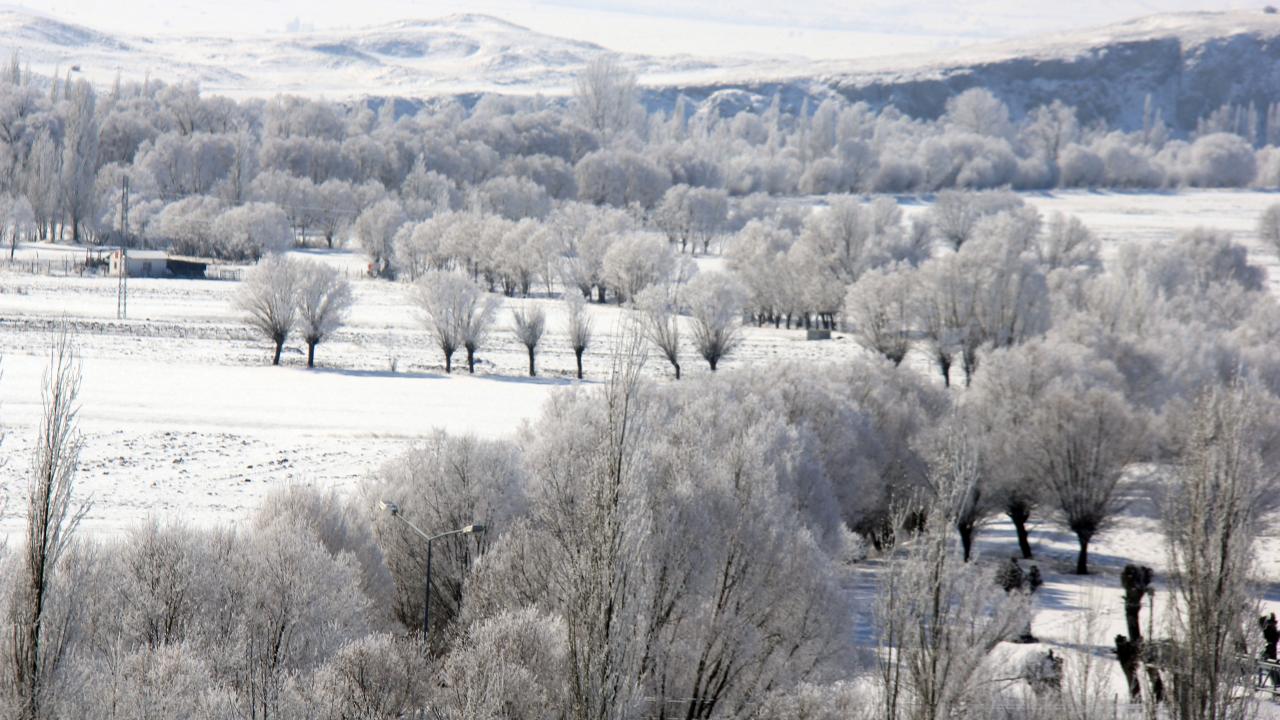 Soğuk havanın etkisiyle Kızılırmak çevresindeki ağaçlar da kırağı ile kaplandı.
