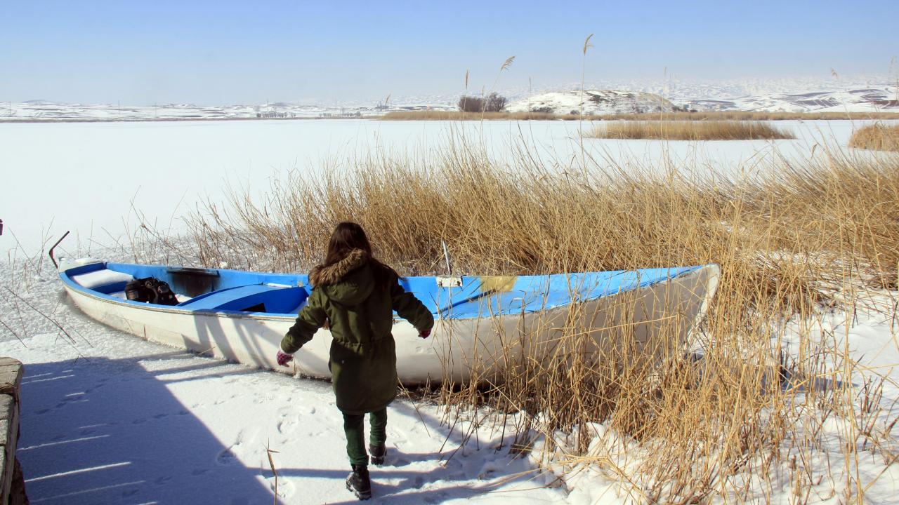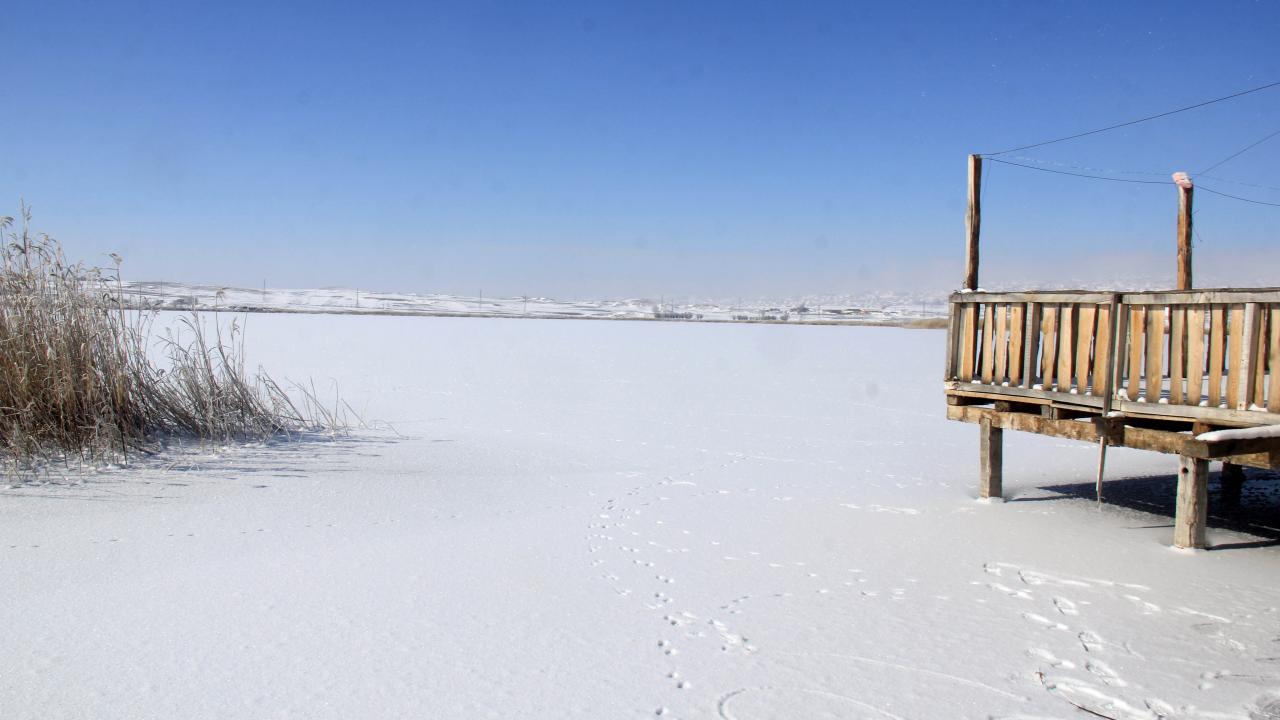 "Kesin korunacak hassas alan" Hafik Gölü'nün yüzeyi buz tuttu