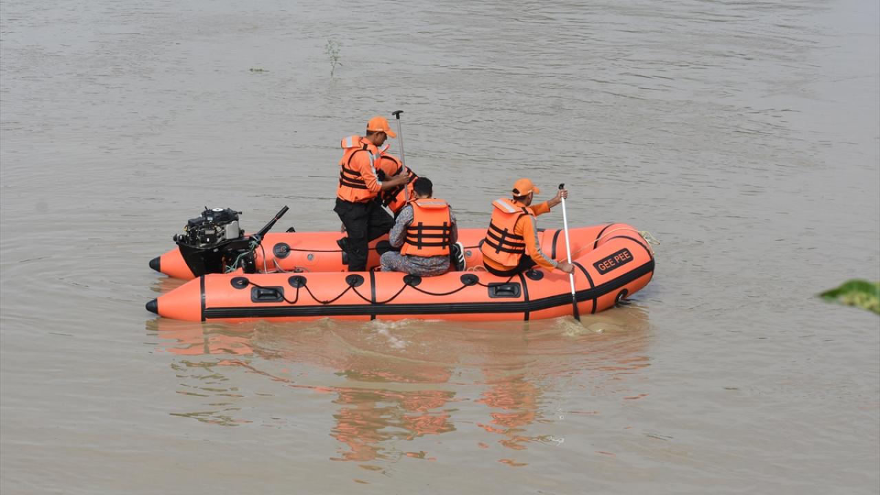Ulusal Afet Müdahale Gücü (NDRF) personeli sular altında kalan evlerden insanları tahliye etmek için çalışma başlattı.
