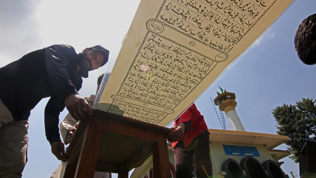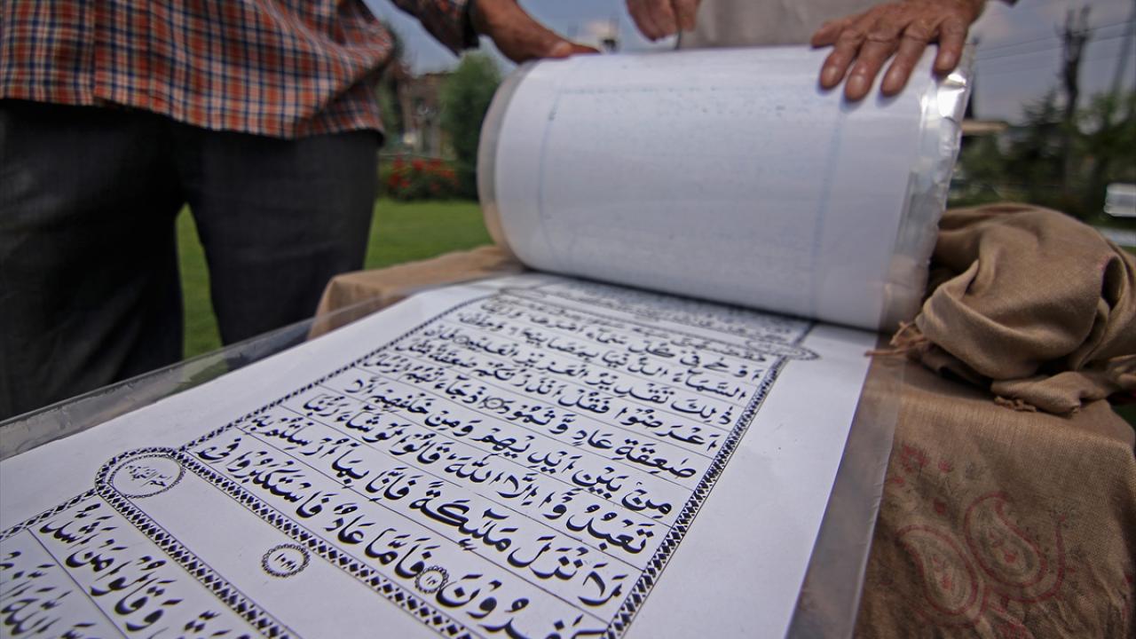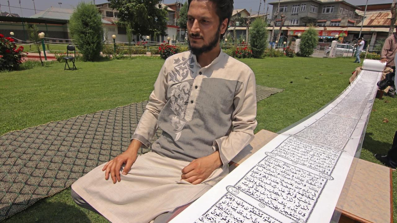 Hindistan'ın Keşmir eyaletinde bulunan Srinagar kentinde 27 yaşındaki Keşmirli hattat Mustafa-İbn-Jameel 500 metrelik parşömen üzerine Kuran-ı Kerim'i elle yazarak yeni bir dünya rekoru kırdı.