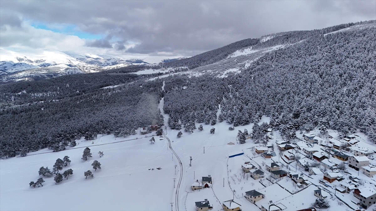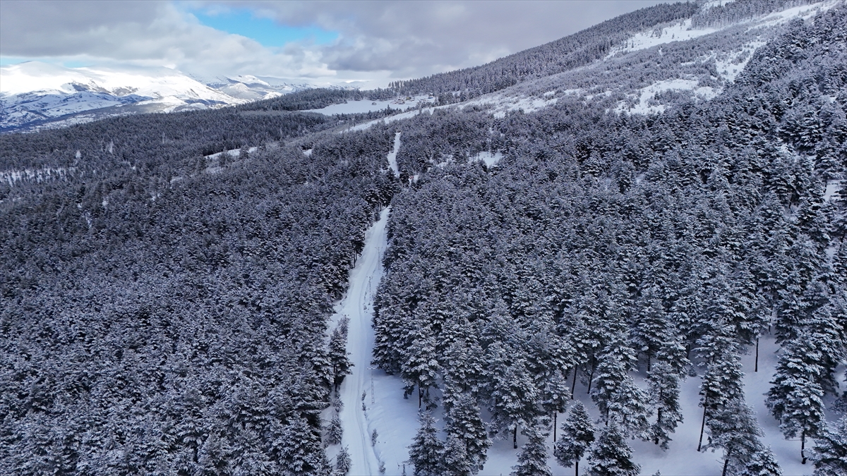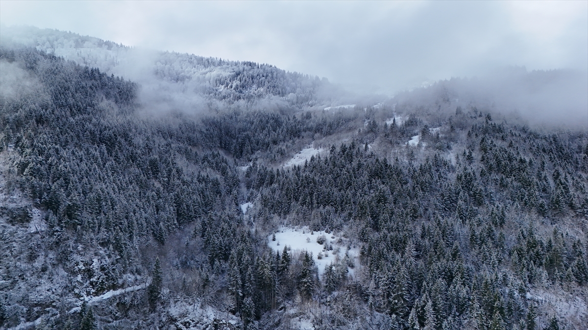 Kışın güzelliklerini sergileyen yaylanın karla buluşması ve zaman zaman bölgede oluşan sis, havadan görüntülendi.