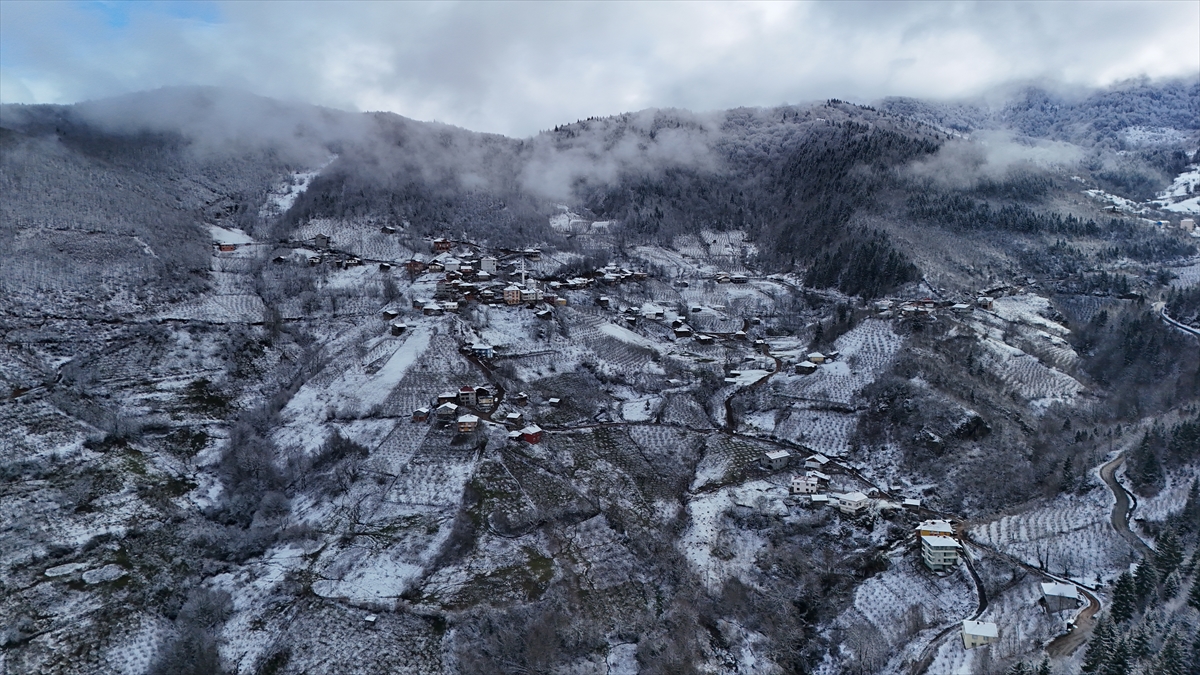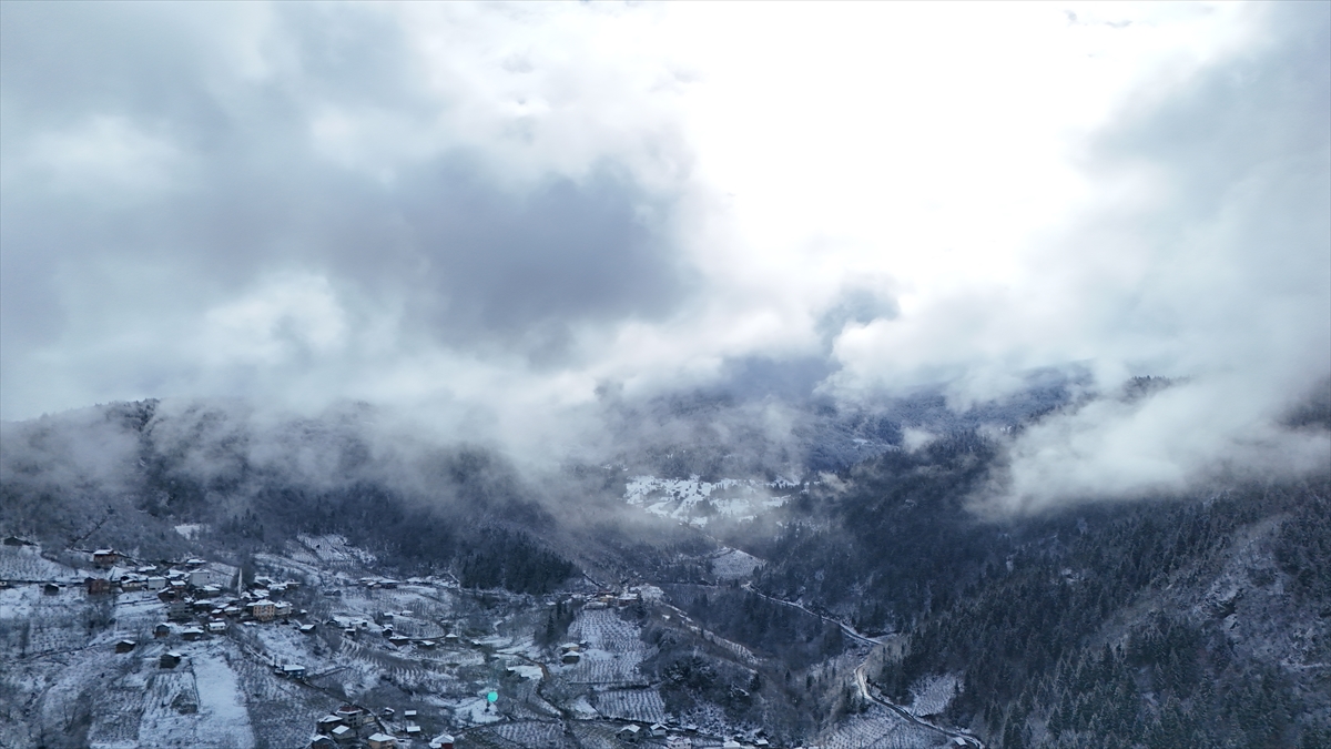 Kar yağışıyla beyaza bürünen Ordu'nun 1200 rakımlı Keyfalan Yaylası, havadan görüntülendi.