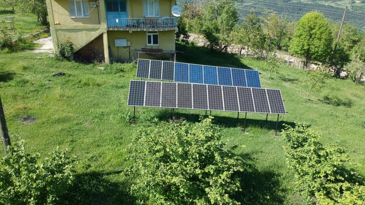 Köydeki 150 metrekarelik evinin bahçesine güneş panelleri kurduran Karaman, kullandığı elektriği karşılamaya başladı.