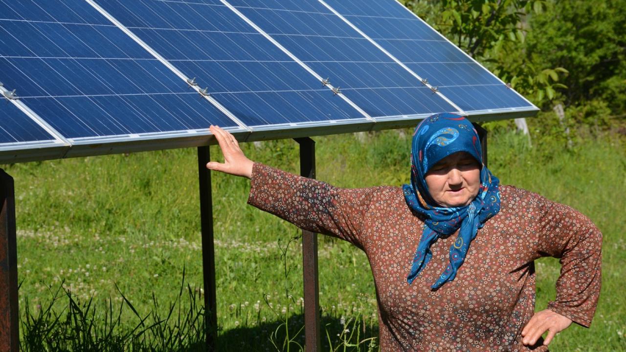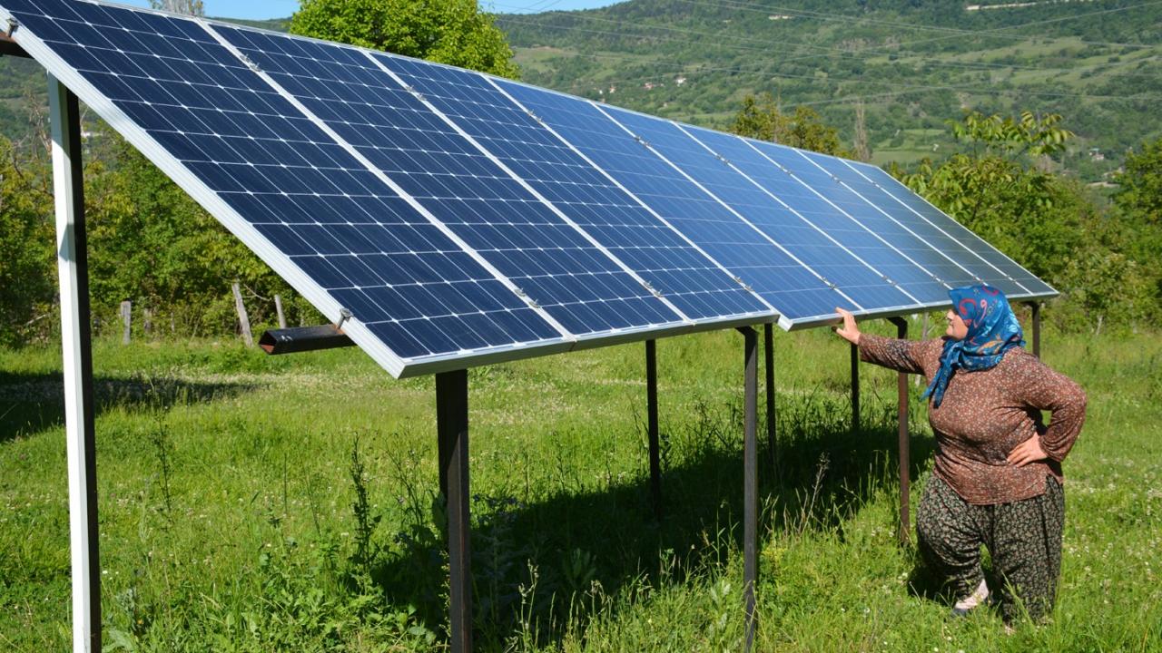 Sinoplu 64 yaşındaki Kezban Karaman, yakınlarını ziyaret için gittiği Almanya'da bir evin bahçesinde gördüğü güneş enerji santralini köyüne kurdu. Kezban teyze elektrik ihtiyacını güneşten karşılıyor.