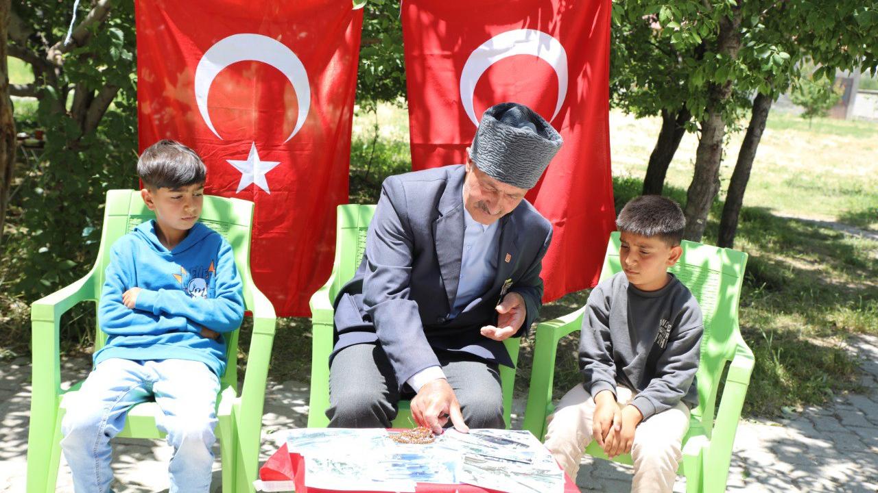 Erciş ilçesinde çiftçilik yapan Kıbrıs gazisi, bir yandan da seminer ve konferanslara katılarak hatıralarını gençler ve çocuklarla paylaşıyor, Kıbrıs Barış Harekatı`nın önemini anlatıyor.