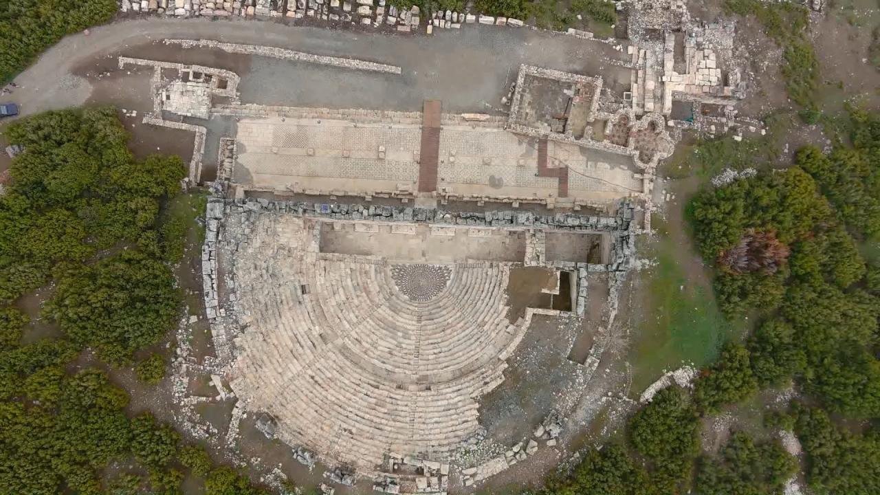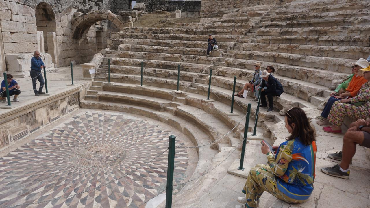 Antik dönemde konser alanı, meclis, mahkeme ve tiyatro görevi yapan odeonun ortasındaki mozaik, ihtişamıyla 2024 yaz sezonunda da ziyaretçilerini kabul etmeye başladı.