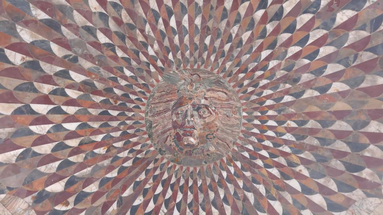 Milattan sonra 1. yüzyılın ilk evrelerinde "Opus Sectile" tekniğiyle renkli mermerlerden inşa edilen, mitolojide gözlerine bakan kötü niyetli kişileri taşa çevirdiğine inanılan Medusa`yı tasvir eden mozaiğin dünyada benzerinin bulunmadığı belirtiliyor.