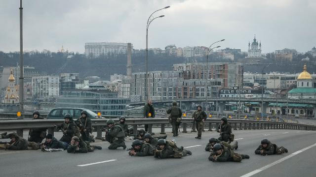 Rusya`nın Ukrayna`ya saldırı başlatmasının 2. gününde Rus birlikleri başkent Kiev`e ilerlieyişini sürdürdü. Ukrayna askerleri, Kiev merkezinde herhangi bir girişe karşı konuşlandı.