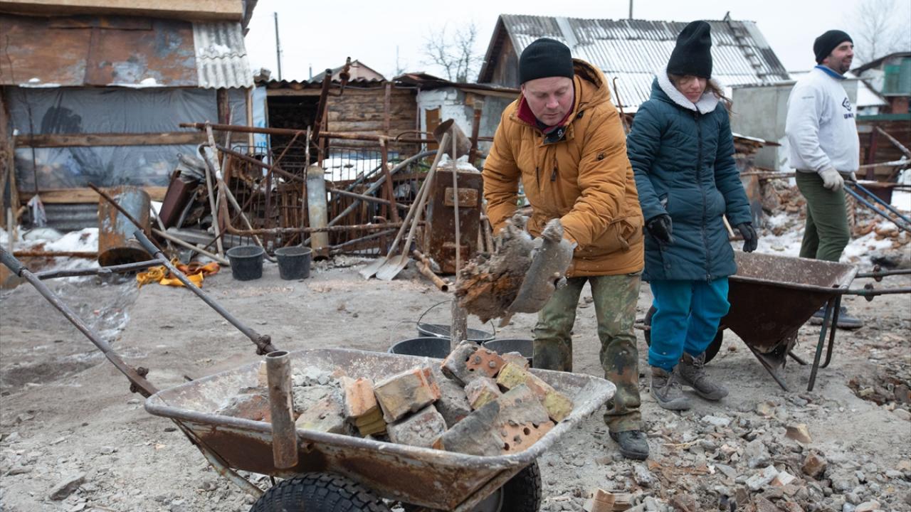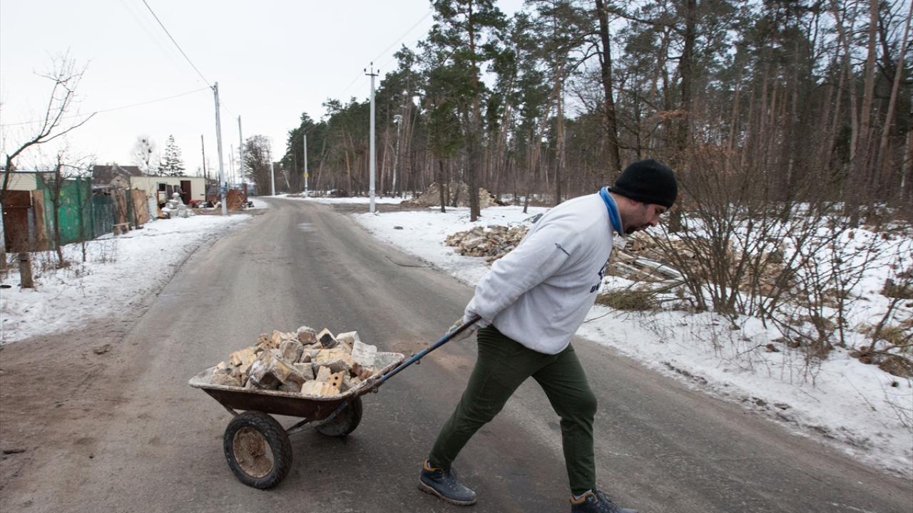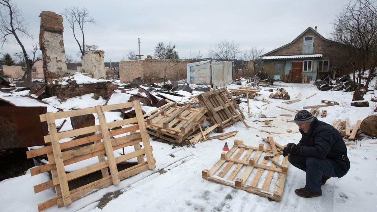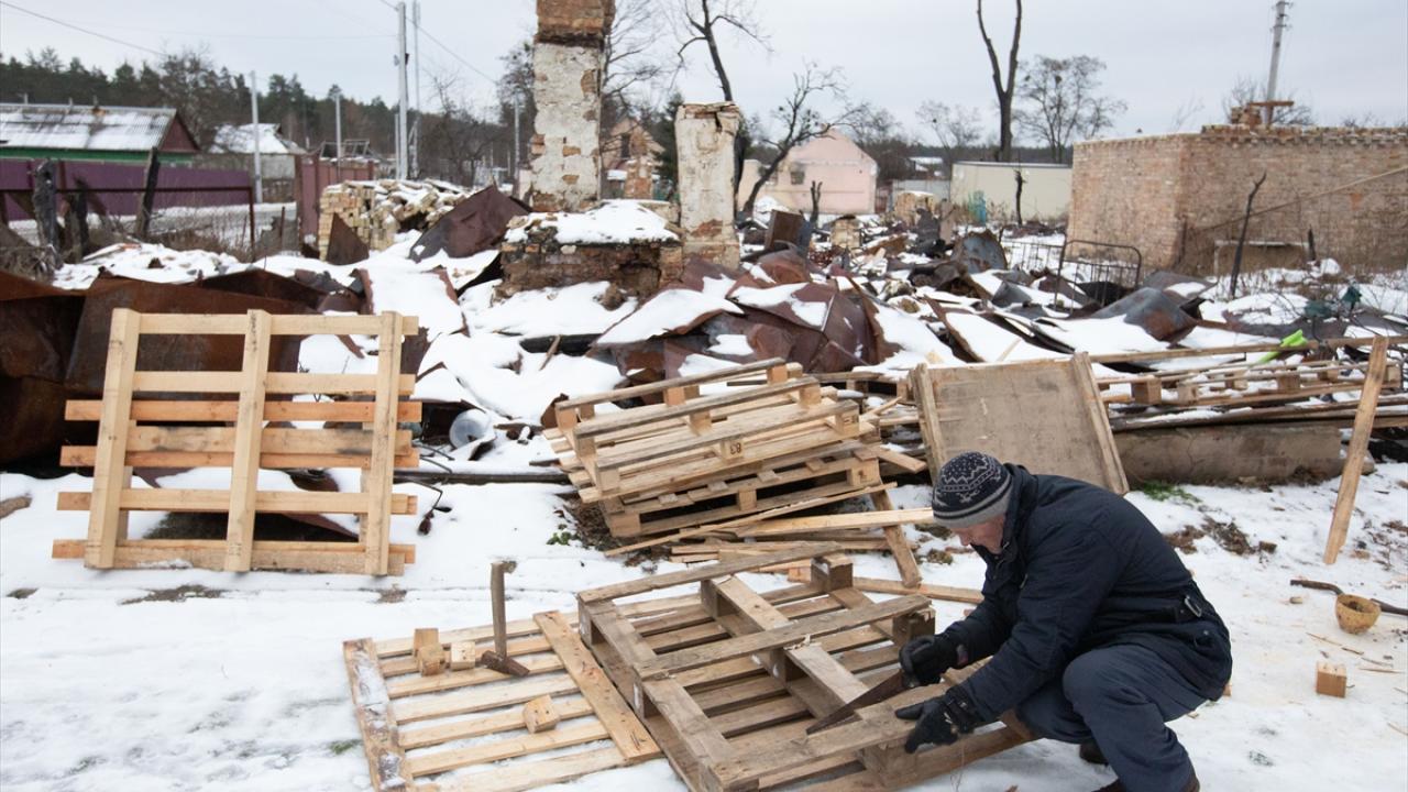 Doğalgaz ve elektrik arzı konusunda sıkıntıların yaşandığı bölgede halk, saldırılarda tamamen yıkılan binalardan ağaç ve odun parçaları toplayarak ısınmaya çalışıyor.