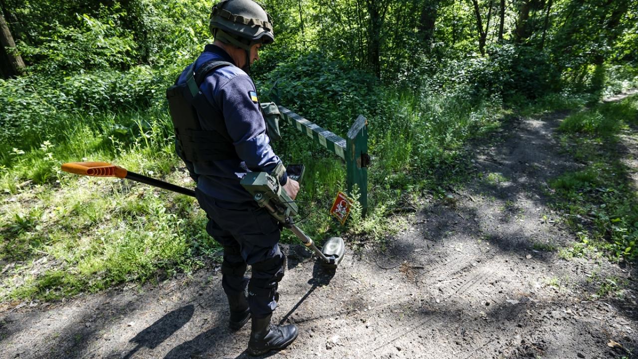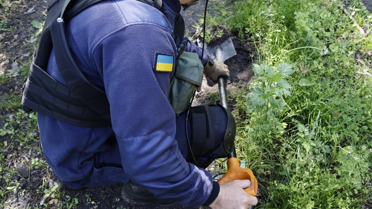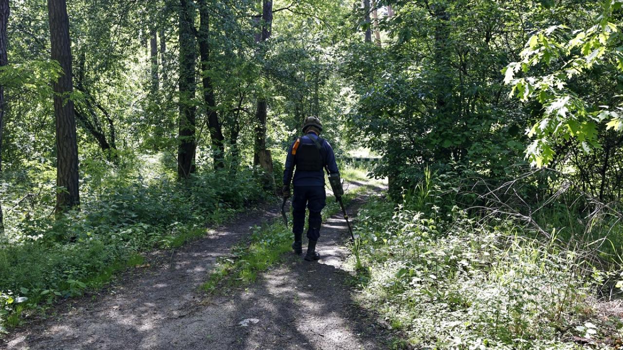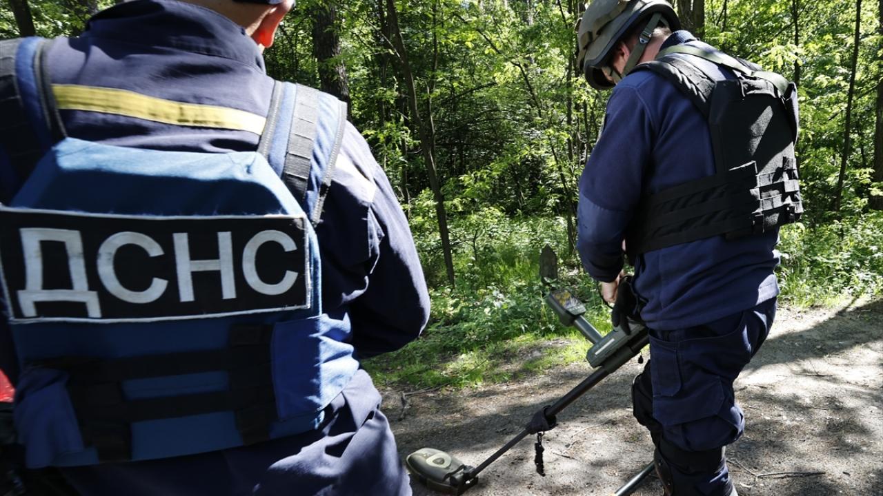 Rusya ile Ukrayna arasındaki savaşın 98. gününde, Ukrayna ordusu başkent Kiev bölgesinde yeniden kontrol sağladığı bazı köylerde mayın tarama ve temizle çalışması yaptı.