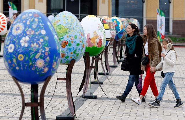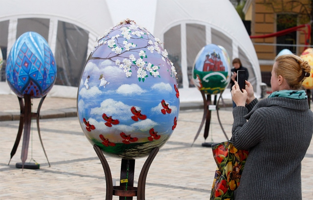 Ukrayna'nın başkenti Kiev'deki "St. Sophia Katedrali" önünde, Paskalya Bayramı çerçevesinde kutlanan Paskalya yumurtaları (Pysanka) Festivali başladı. Festivalde, ülkenin çeşitli şehir ve ilçelerinde hazırlanan Paskalya yumurtaları sergilendi. Ortodoks mezhebinin yanı sıra Ukrayna'nın ulusal motiflerinin de resmedildiği Paskalya yumurtaları, görenlerde büyük ilgi uyandırdı.