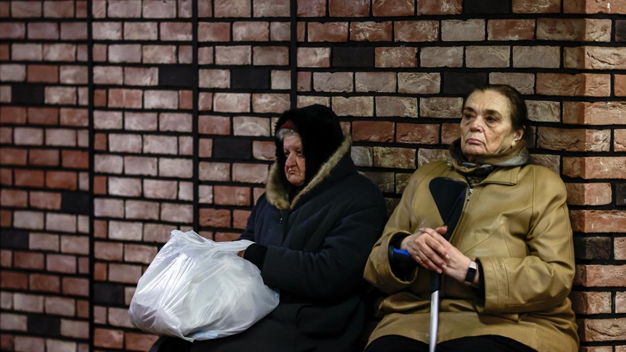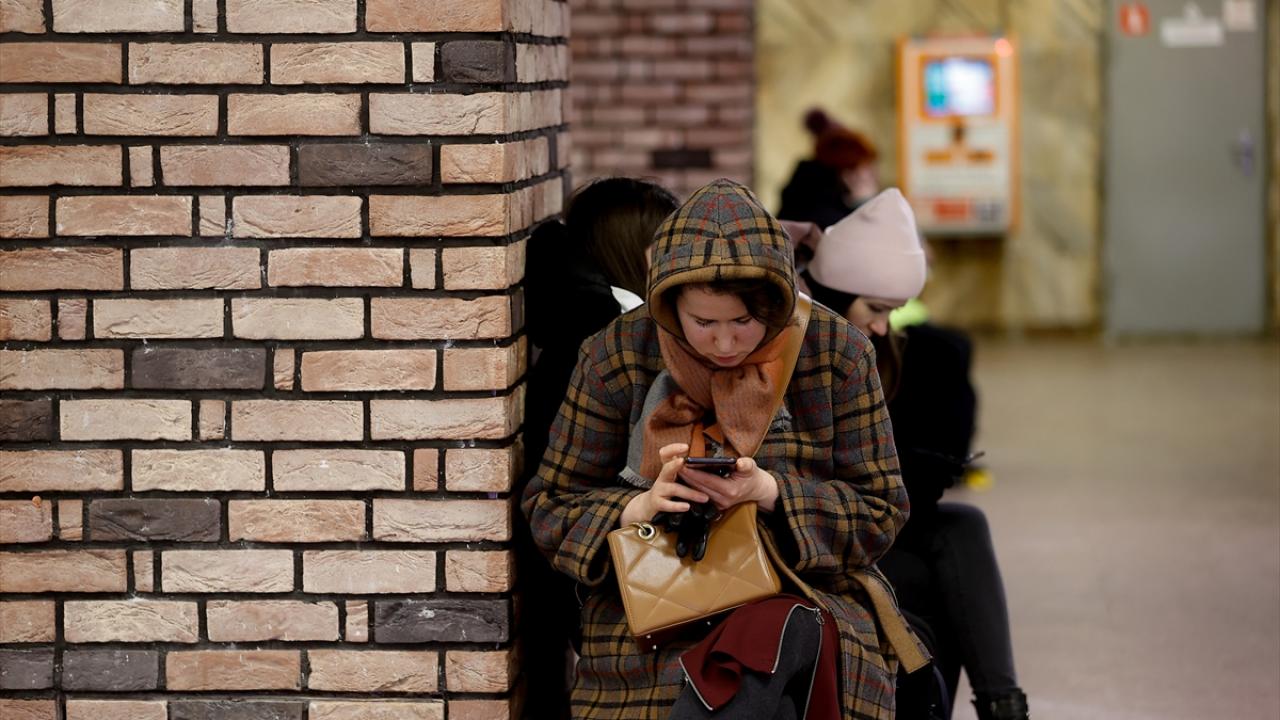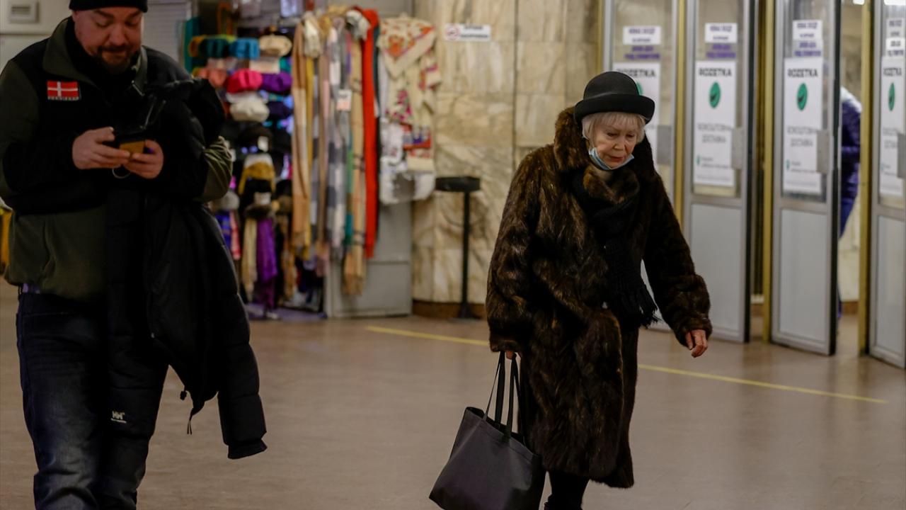 Rusya'ya karşı savaşın devam ettiği Ukrayna'nın başkenti Kiev'de vatandaşlar, siren sesleri duyulduğu zaman hava saldırılarından korunmak için metro istasyonlarına sığınıyor.