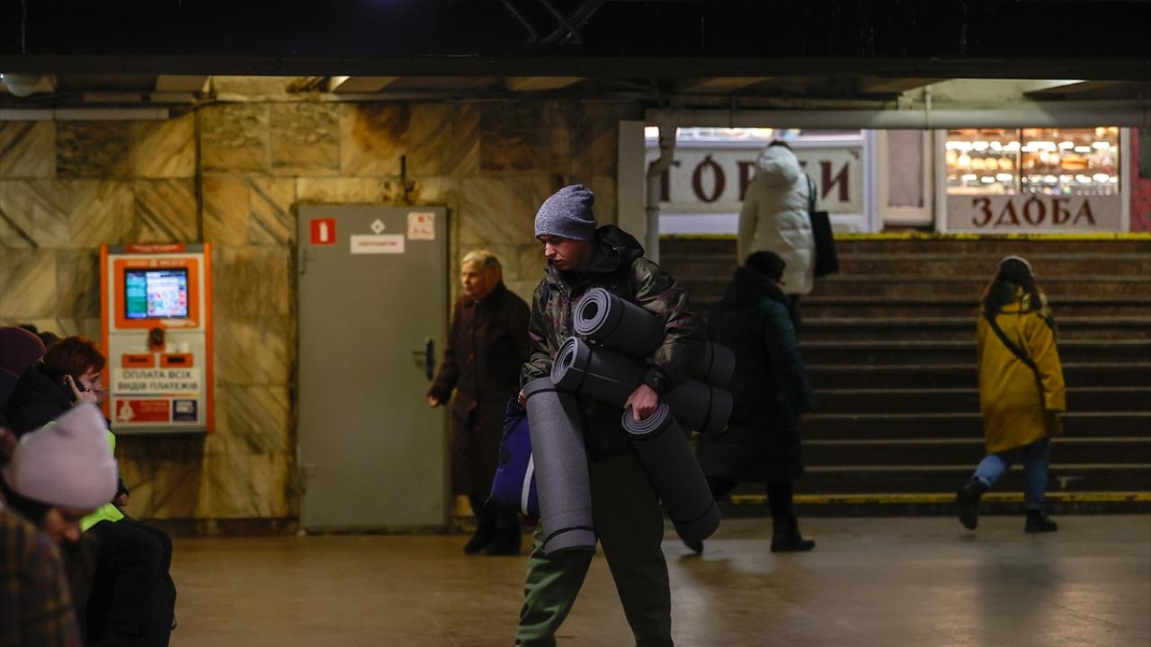 Kiev'de vatandaşlar, hava saldırılarından korunmak için metro istasyonlarına sığınıyor